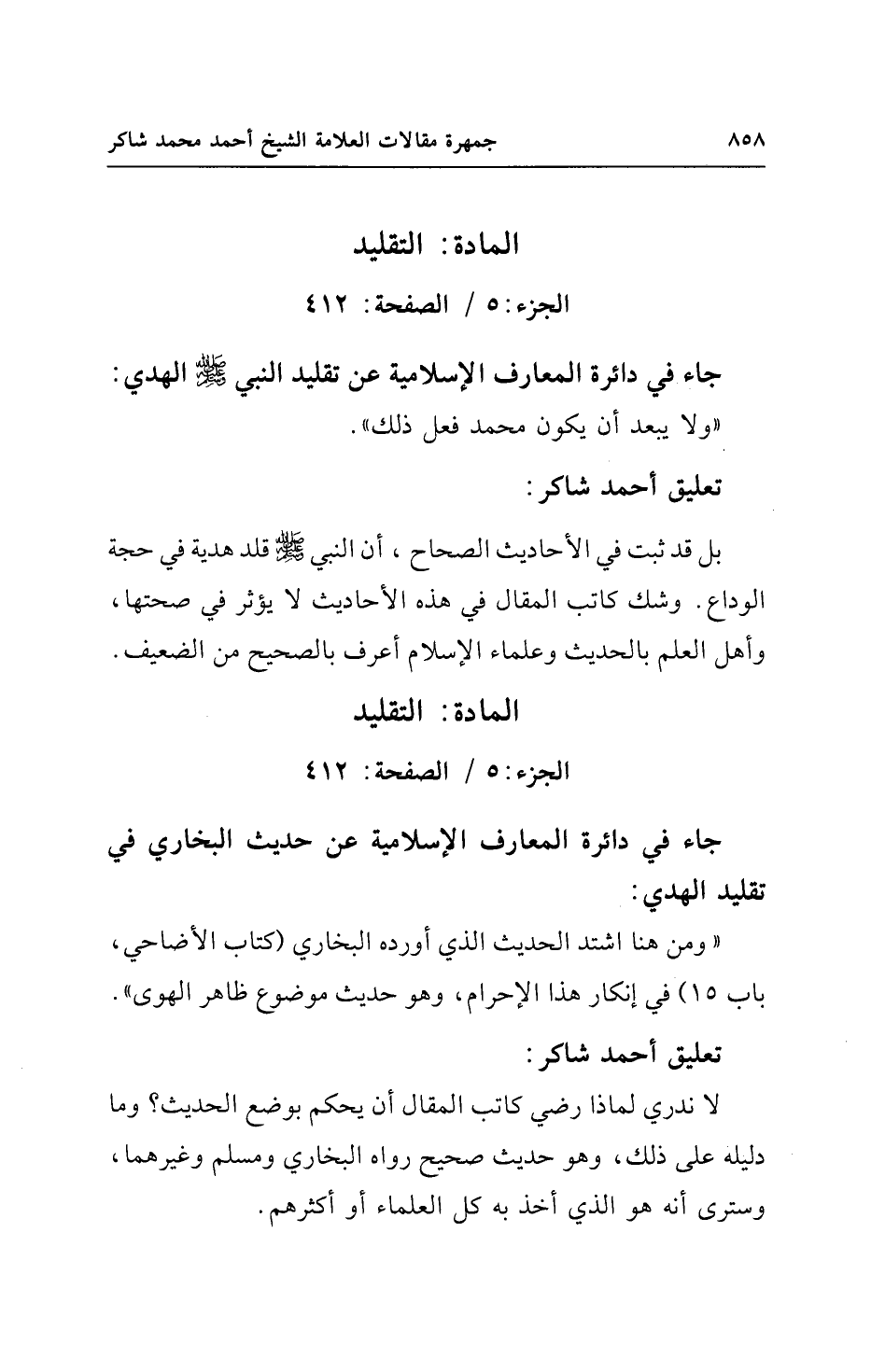 جاء في دائرة المعارف الإسلامية عن تقليد النبي - صلى الله عليه وسلم - الهدي: