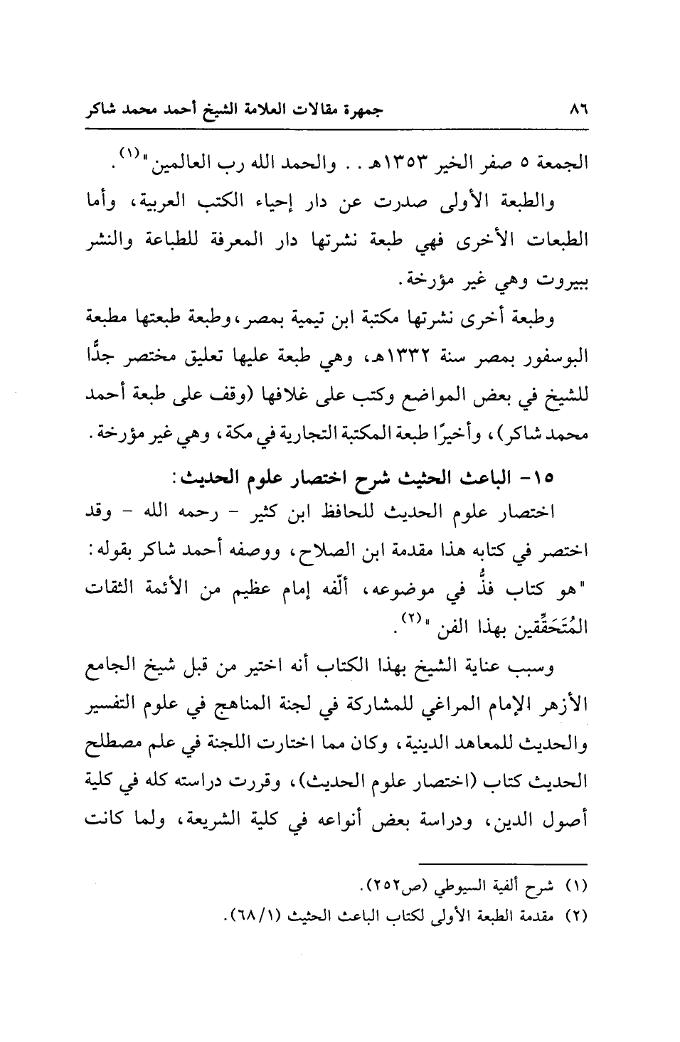 (¬2) مقدمة الطبعة الأولى لكتاب الباعث الحثيث (1/ 68).