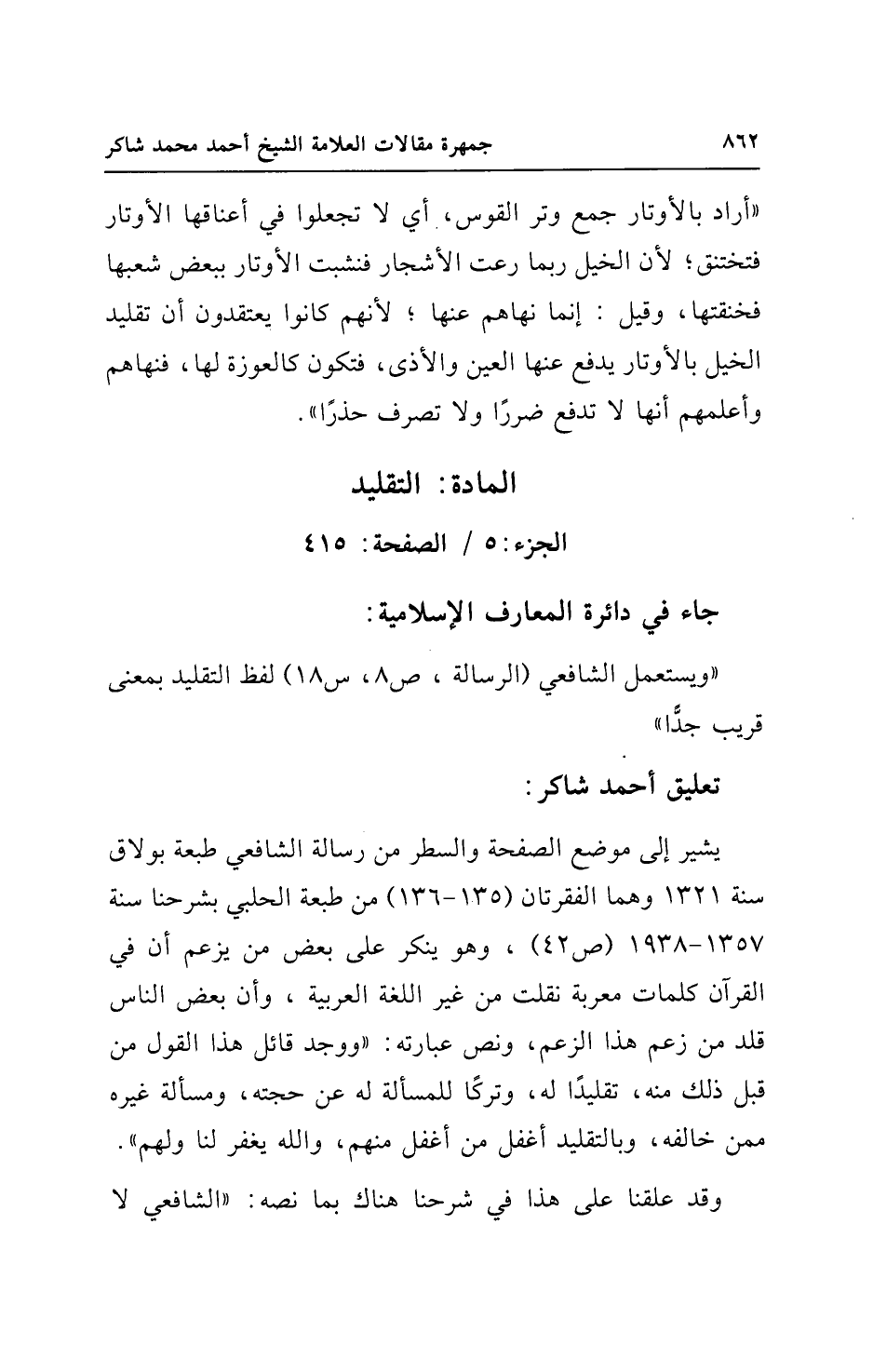 "ويستعمل الشافعي (الرسالة، ص 8، س 18) لفظ التقليد بمعنى قريب جدًّا"