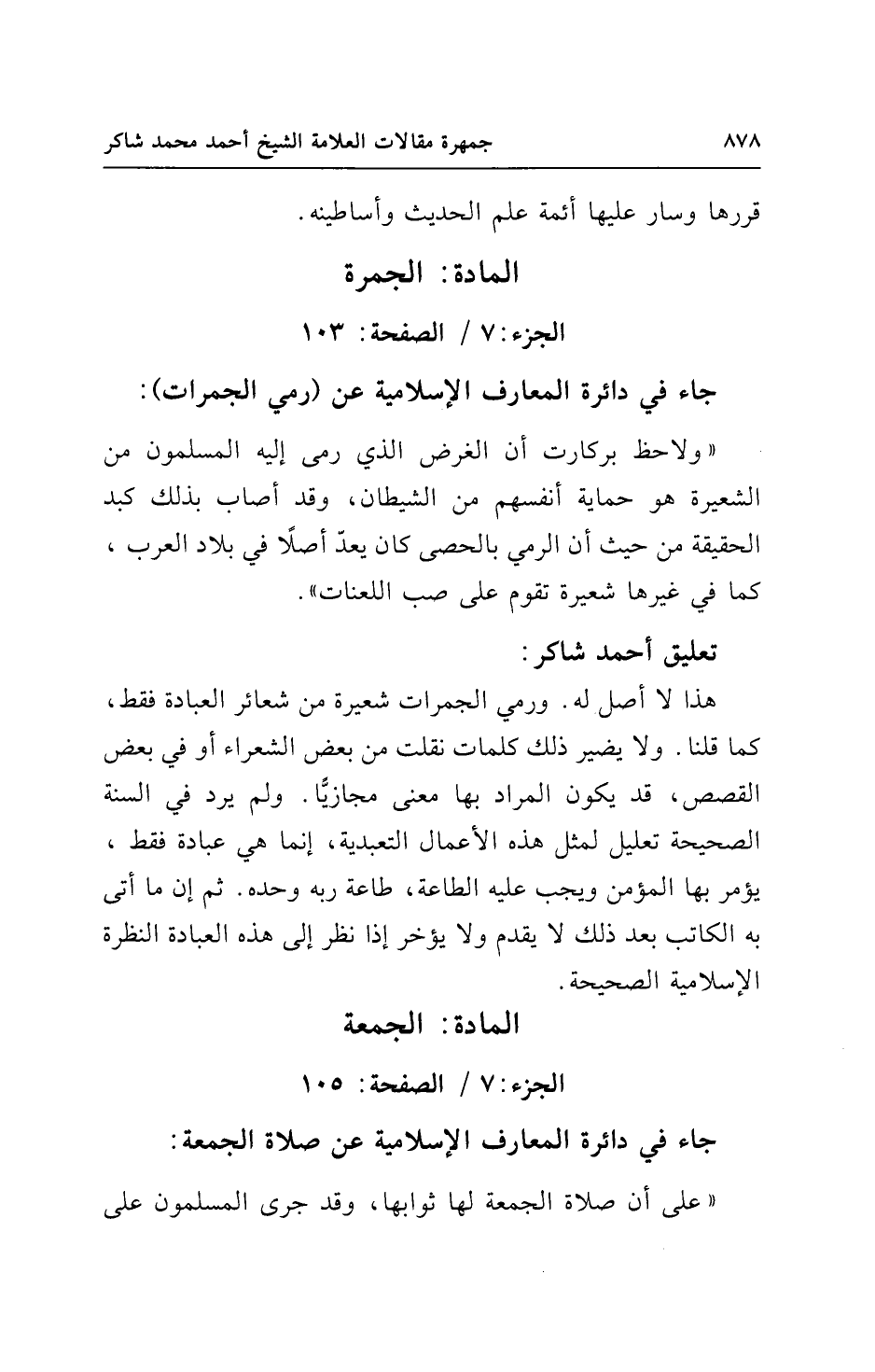 جاء في دائرة المعارف الإسلامية عن (رمي الجمرات):