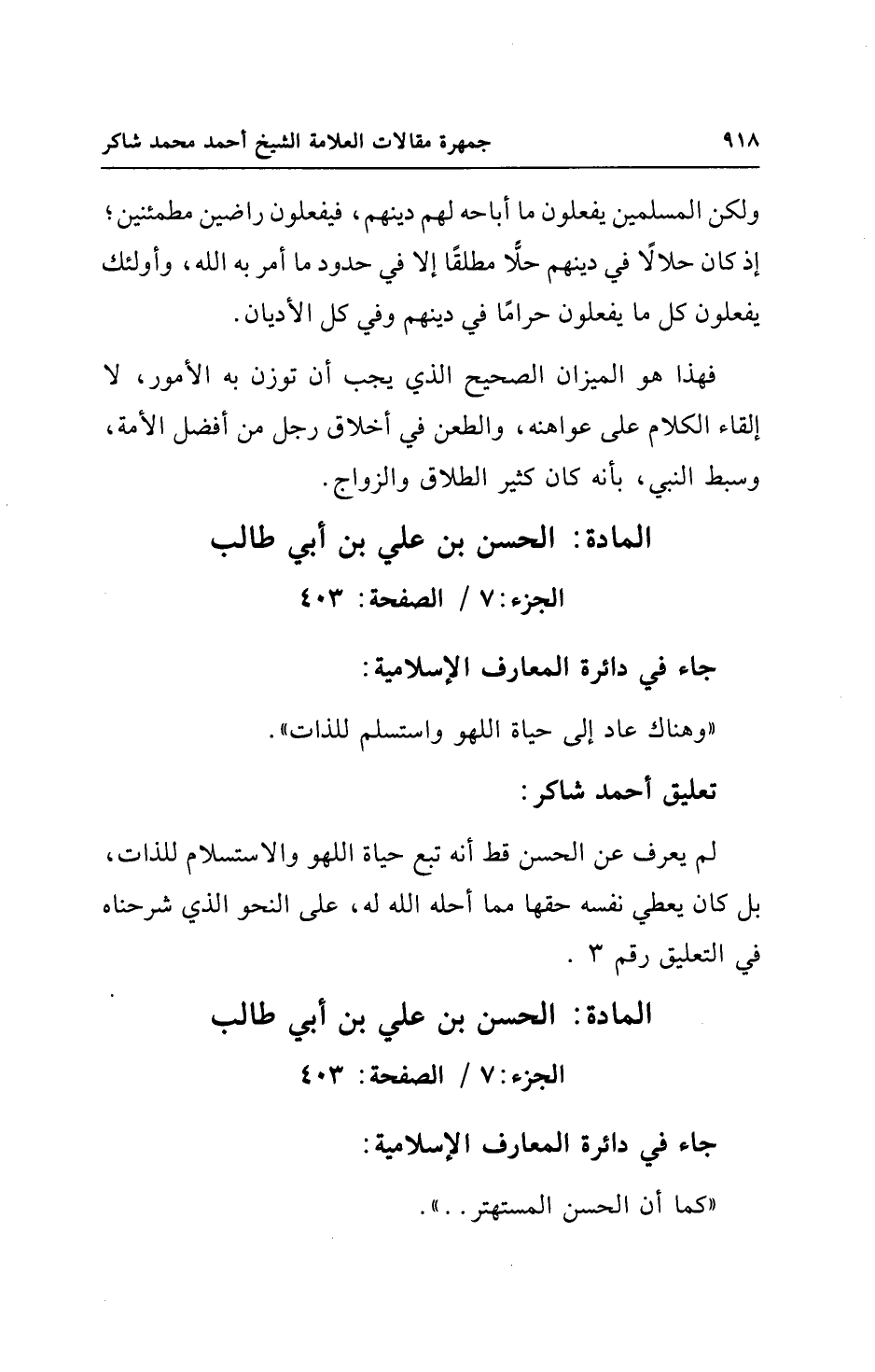 فهذا هو الميزان الصحيح الذي يجب أن توزن به الأمور، لا إلقاء الكلام على عواهنه، والطعن في أخلاق رجل من أفضل الأمة، وسبط النبي، بأنه كان كثير الطلاق والزواج.