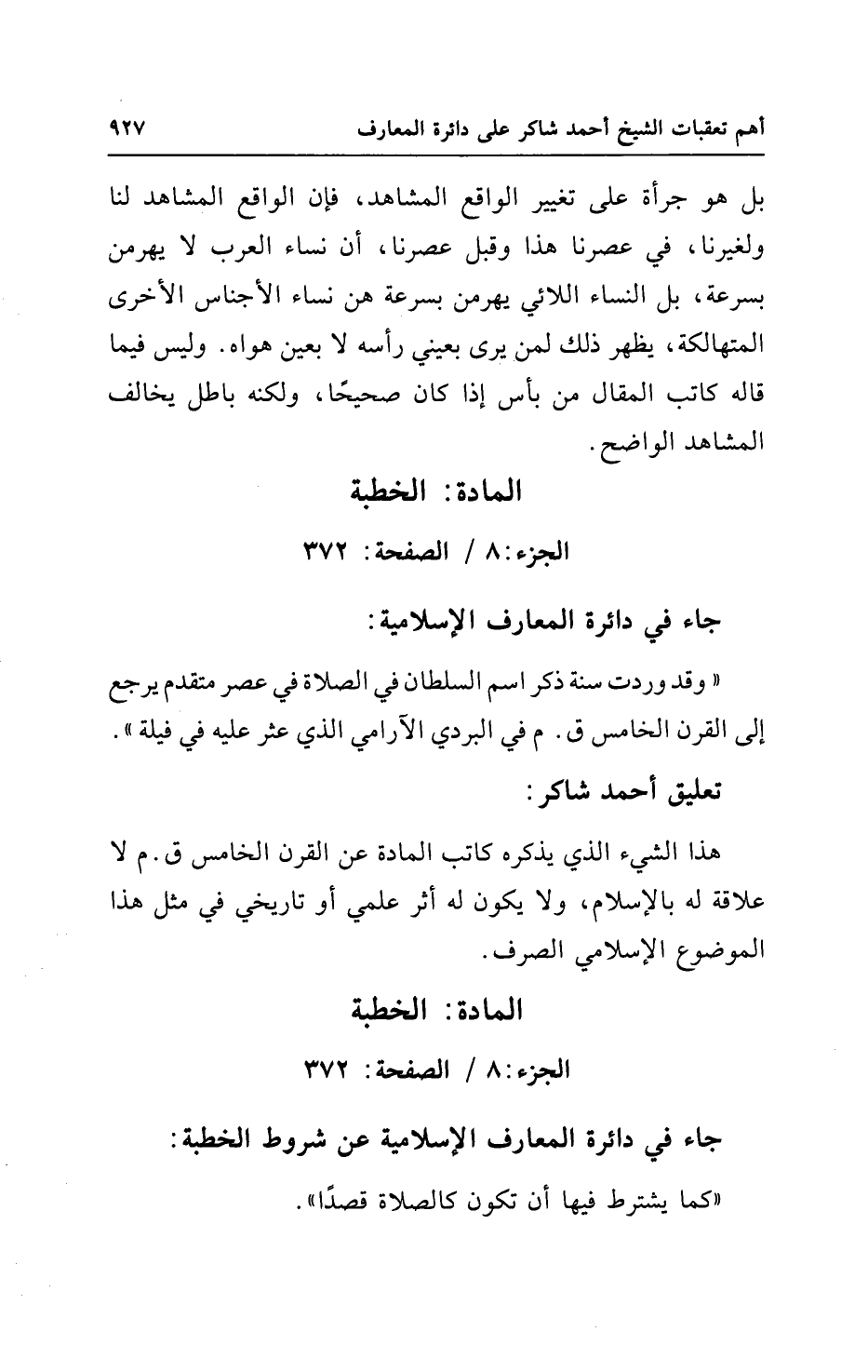 بل هو جرأة على تغيير الواقع المشاهد، فإن الواقع المشاهد لنا ولغيرنا، في عصرنا هذا وقبل عصرنا، أن نساء العرب لا يهرمن بسرعة، بل النساء اللائي يهرمن بسرعة هن نساء الأجناس الأخرى المتهالكة، يظهر ذلك لمن يرى بعيني رأسه لا بعين هواه. وليس فيما قاله كاتب المقال من بأس إذا كان صحيحًا، ولكنه باطل يخالف المشاهد الواضح.