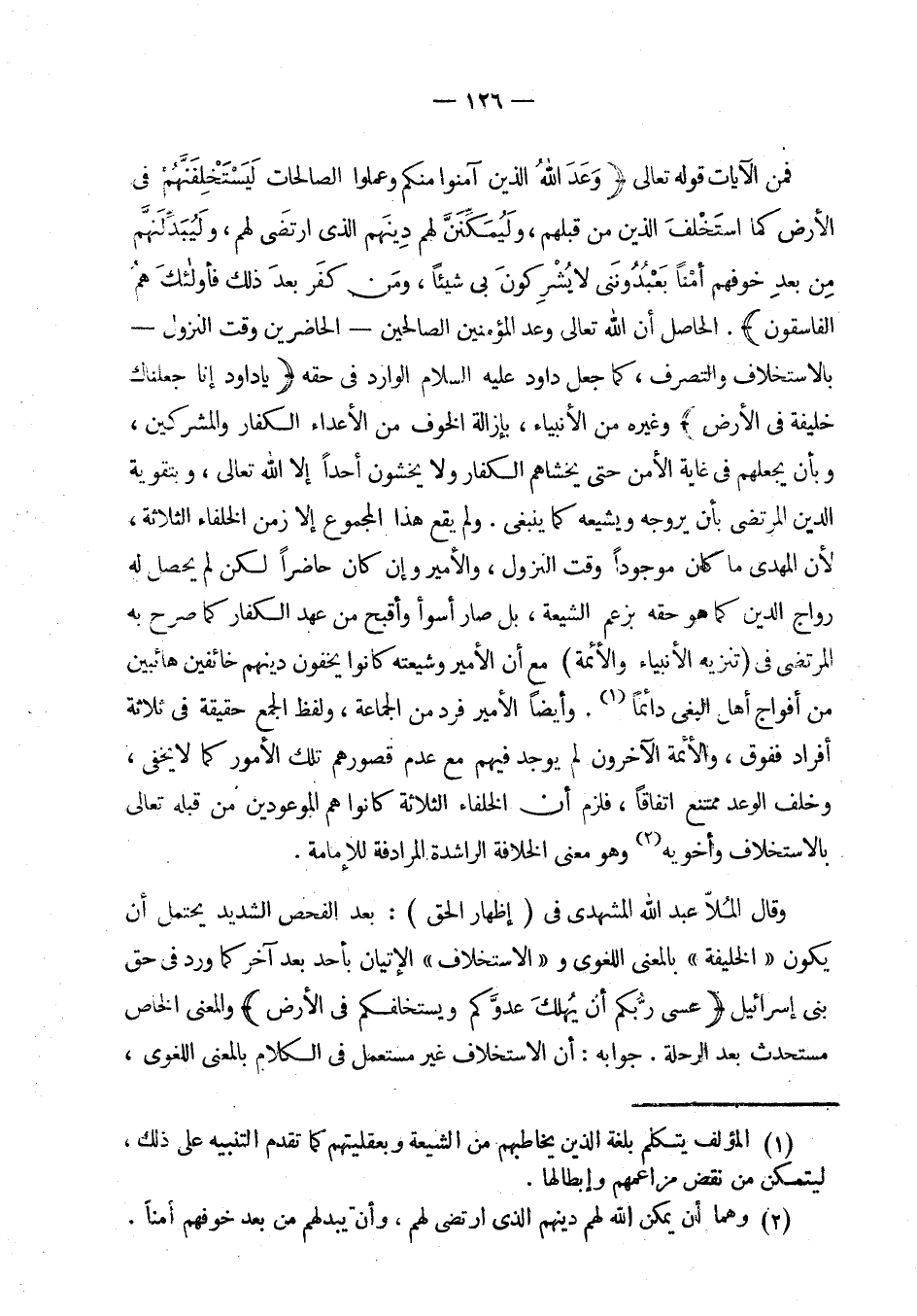 (¬4) المؤلف يتكلم بلغة الدين يخاطبهم من الشيعة كما تقدم التنبيه على ذلك ليتمكن من نقض مزاعمهم وإبطالها.
