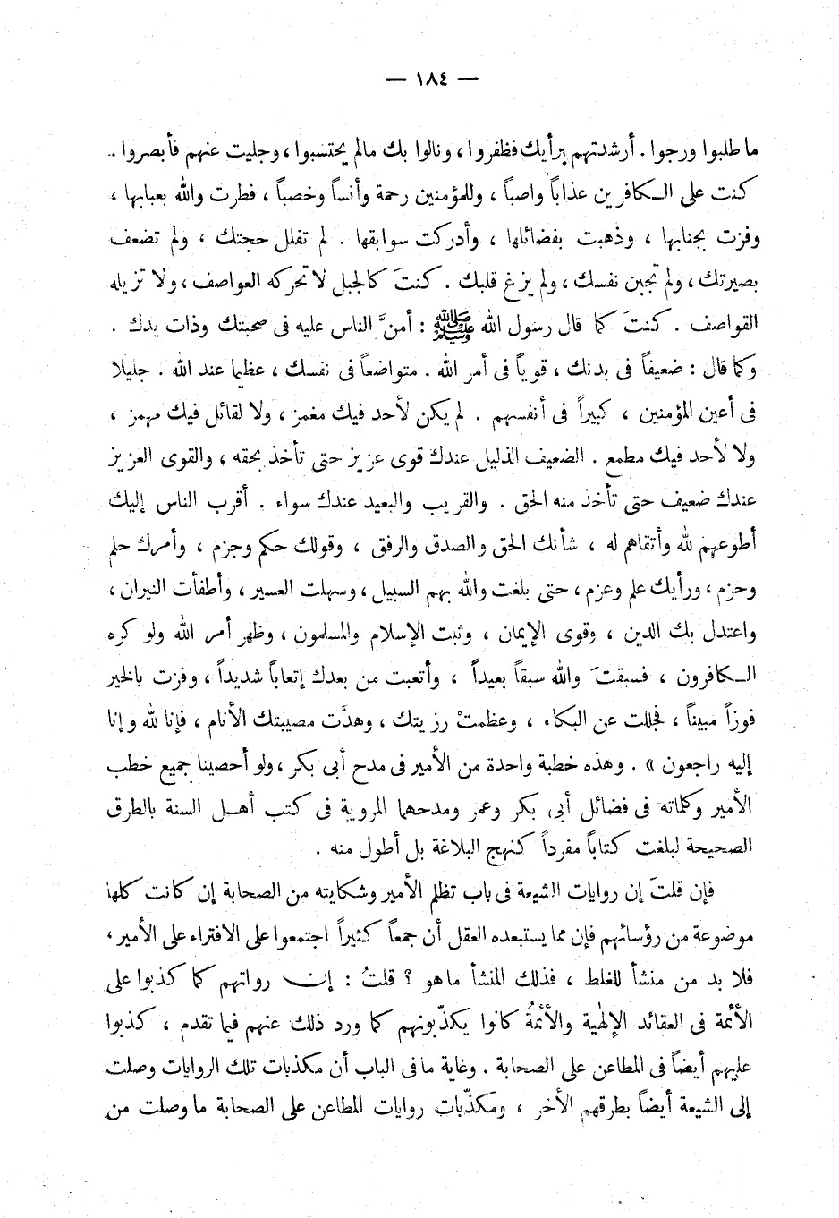 وهذه خطبة واحدة من الأمير في مدح أبي بكر، ولو أحصينا جميع خطب الأمير وكلماته في فضائل أبي بكر وعمر ومدحهما المروية في كتب أهل السنة بالطرق الصحيحة لبلغت مفردا كنهج البلاغة بل أطول منه.