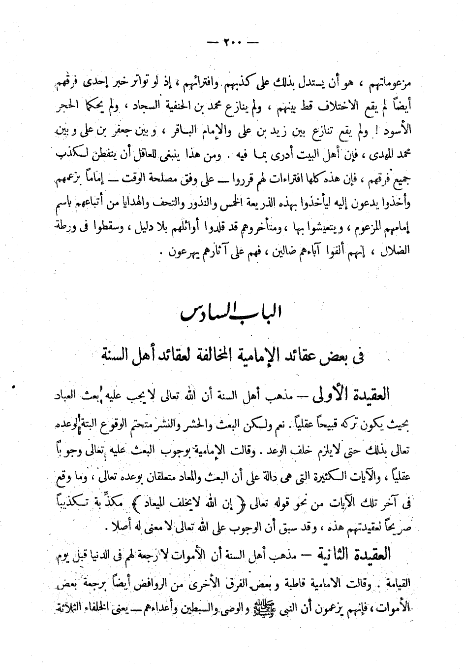 الباب السادس في بعض عقائد الإمامية المخالفة لعقائد أهل السنة