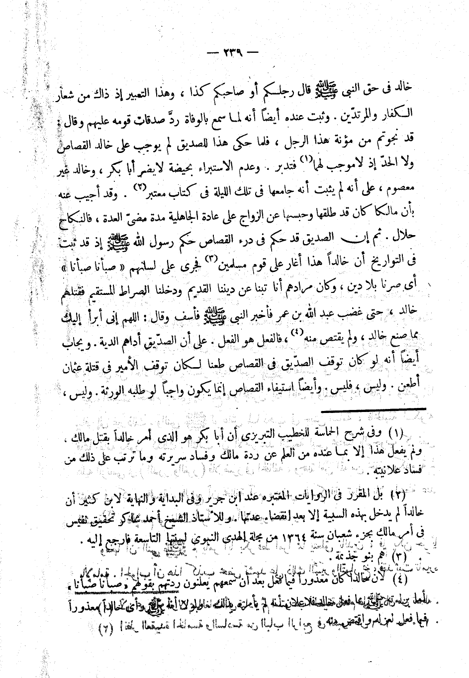 (¬4) بل المقرر في الروايات المعتبرة عند أبن جرير وفي البداية والنهاية لابن كثير أن خالدا لم يدخل بهذه السبية إلا بعد انقضاء عدتها. وللأستاذ الشيخ أحم شاكر تحقيق نفيس في امر مالك بجزء شعبان سنة 1364 من مجلة الهدي النبوي لسنتها التاسعة فارجع إليه.