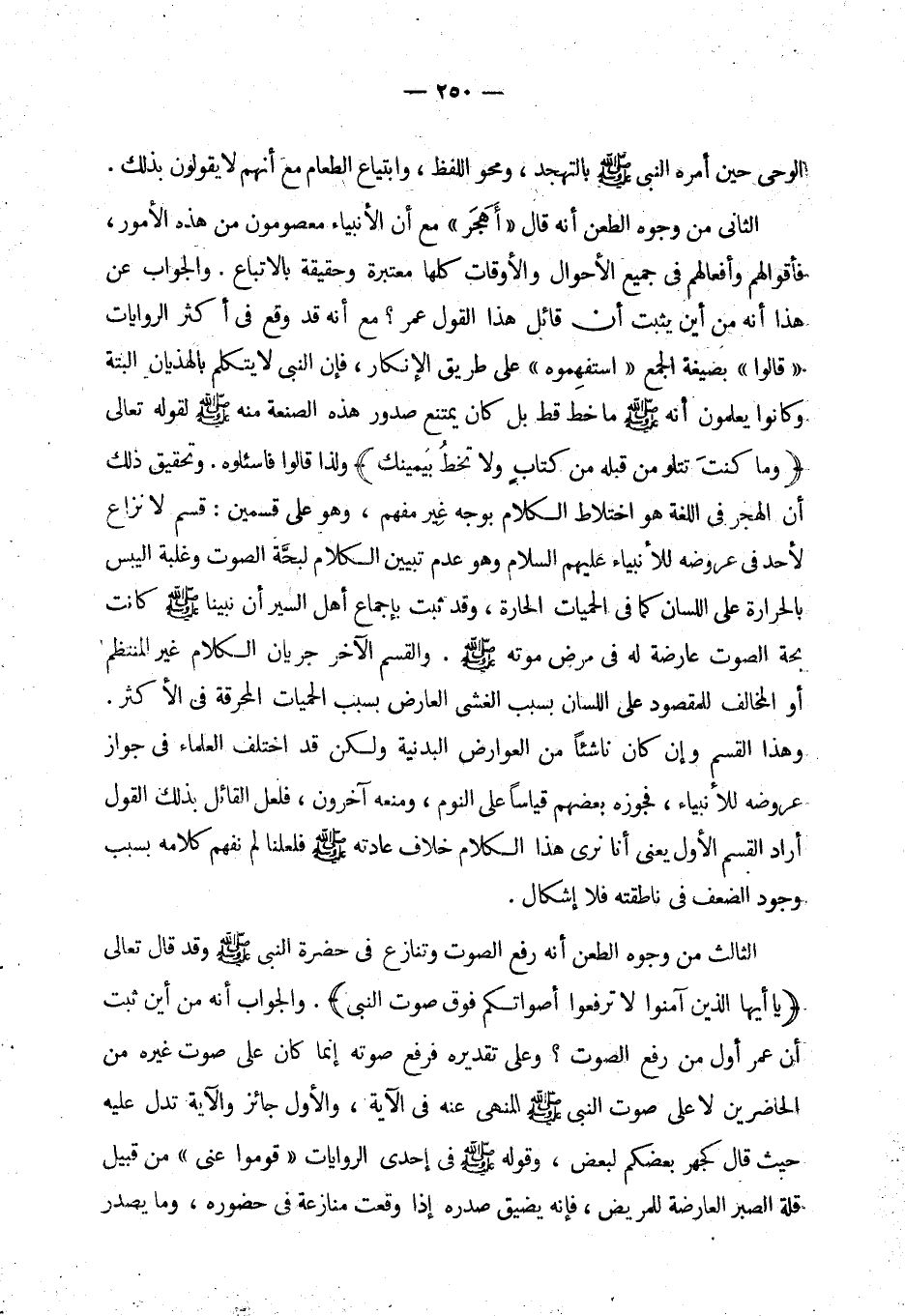هو أصح الكتب عند أهل السنة بعد القرآن بطرق متعددة أن الرسول - صلى الله عليه وسلم - ذهب إلى بيت الأمير والبتول ليلة وأيقظها من مضجعها وأمرهما بصلاة التهجد مؤكدا، فقال الأمير: والله ما نصلي إلا ما كتب الله علينا أي الصلاة المفروضة، وإنما أنفسنا بيد الله، يعني لو وفقنا الله لصلاة التهجد لصلينا. فرجع النبي - صلى الله عليه وسلم - وهو يضرب على فخذيه ويقول {وكان الإنسان أكثر شيء جدلا} فقد رد الأمير قول الرسول، ولكن لما كانت القرائن الحالية دالة على صدق الأمير واستقامته لم يلمه النبي - صلى الله عليه وسلم -. وروى البخاري أيضا أن النبي - صلى الله عليه وسلم - لما تصالح مع قريش في الحديبية كتب الأمير كتاب الصلح وزاد لفظ «رسول الله» فامتنع الكفار عن قبوله وقالوا: لو سلمنا بهذا اللقب لما حاربناه وصددناه عن طواف البيت، فأمر النبي - صلى الله عليه وسلم - عليا أن يمحو هذا اللفظ وأكد ذلك، فلم يمحه الأمير لكمال الإيمان وخالف الرسول في ذلك حتى محاه النبي - صلى الله عليه وسلم - بيده الشريفة. وقد ثبتت مخالفة الأمير أيضا في كتبهم، فقد روى محمد بن بابويه في (الأمالي) والديلمي (¬1) في (إرشاد القلوب) أن رسول الله - صلى الله عليه وسلم - أعطى فاطمة سبعة دراهم وقال: أعطيها عليا ومريه أن يشتري لأهل بيته طعاما فقد غلب عليهم الجوع، فأعطتها عليا وقالت: إن رسول الله - صلى الله عليه وسلم - أمرك أن تبتاع لنا طعاما. فأخذها علي وخرج من بيته ليبتاع طعاما لأهل بيته فسمع رجلا يقول: من يقرض الملي الوفي؟ فأعطاه درهم. (¬2) فقد خالف قول الرسول، وتصرف في مال الغير.