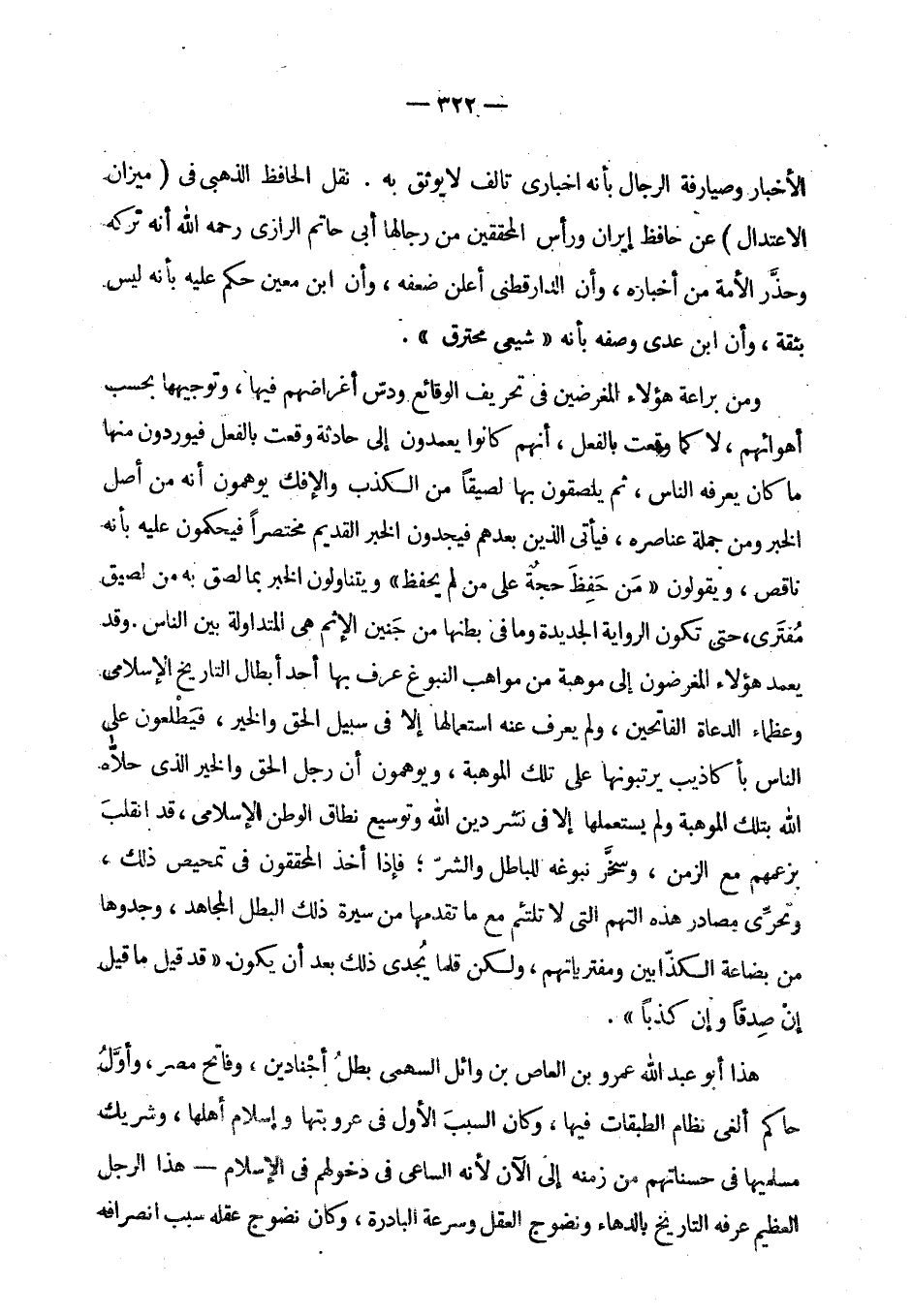 ومن براعة هؤلاء المغرضين في تحريف الوقائع ودس أغراضهم فيها، وتوجيهها بحسب أهؤائهم، لا كما وقعت بالفعل، أنهم كانوا يعمدون إلى حادثة وقعت بالفعل فيرددون منها ما كان يعرفه الناس، ثم يلصقون بها لصيقا من الكذب والإفك يوهمون أنه من أصل الخبر ومن جملة عناصره، فيأتي الذين بعدهم فيجدون الخبر القديم مختصرا فيحكمون عليه أنه ناقص، ويقولون «من حفظ حجة على من لم يحفظ» ويتناولون الخبر ما لصق به من لصيق مفترى، حتى تكون الرواية الجديدة وما في بطنها من جنين الإثم هي المتداولة بين الناس. وقد يعمد هؤلاء المغرضون إلى موهبة من مواهب النبوغ عرف بها أحد أبطال التاريخ الإسلامي وعظماء الدعاة الفاتحين، لم يعرف عنه استعمالها إلا في سبيل الحق والخير، فيطلعون على الناس بأكاذيب يرتبونها على تلك الوهبة، ويوهمون أن رجل الحق والخير الذي حلاه الله بتلك الموهبة ولم يستعملها إلا في نشر دين الله وتوسيع نطاق الوطن الإسلامي، وقد انقلب بزعمهم مع الزمن، وسخر نبوغه للباطل والشر، فإذا أخذ المحققون في تمحيص ذلك وتحري مصادر هذه التهم التي لا تلتئم مع ما تقدمها من سيرة ذلك البطل المجاهد، وجدوها من بضاعة الكذابين ومفترياتهم، ولكن قلما يجدى ذلك بعد أن يكون «قد قيل ما قيل إن صدقا وإن كذبا».