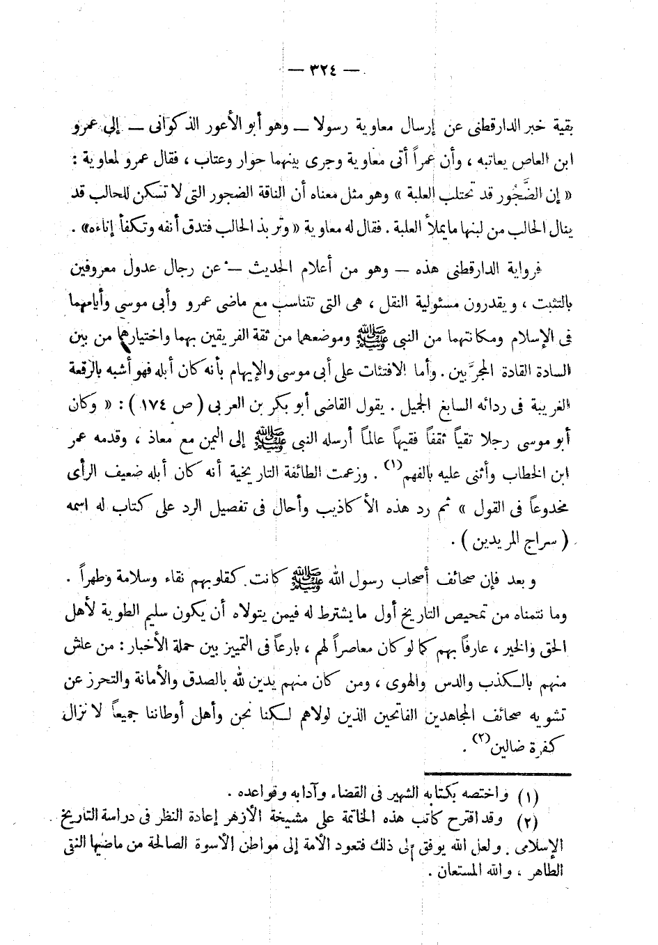 (¬2) وقد اقترح كاتب هذه الخاتمة على مشيخة الأزهر إعادة النظر في دراسة التاريخ الإسلامي. ولعل الله بوفق إلى ذلك فتعود الأمة إلى مواطن الأسوة الصالحة من ماضيها النقى الطاهر، والله المستعان.