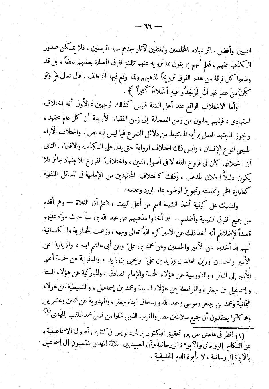 النبيين وأفضل سائر عبداه المخلصين والمقتفين لآثار جدهم سيد المرسلين، فلا يمكن صدور الكذب عنهم، فعلم أنهم بريئون مما ترويه عنهم تلك الفرق المضلة بعضهم بعضا، بل قد وضعها كل فرقة من هذه الفرق ترويحا لمذهبهم. ولذا وقع فيها التخالف. قال تعالى {ولو كان من عند غير الله لوجدوا فيه اختلافا كثيرا}.