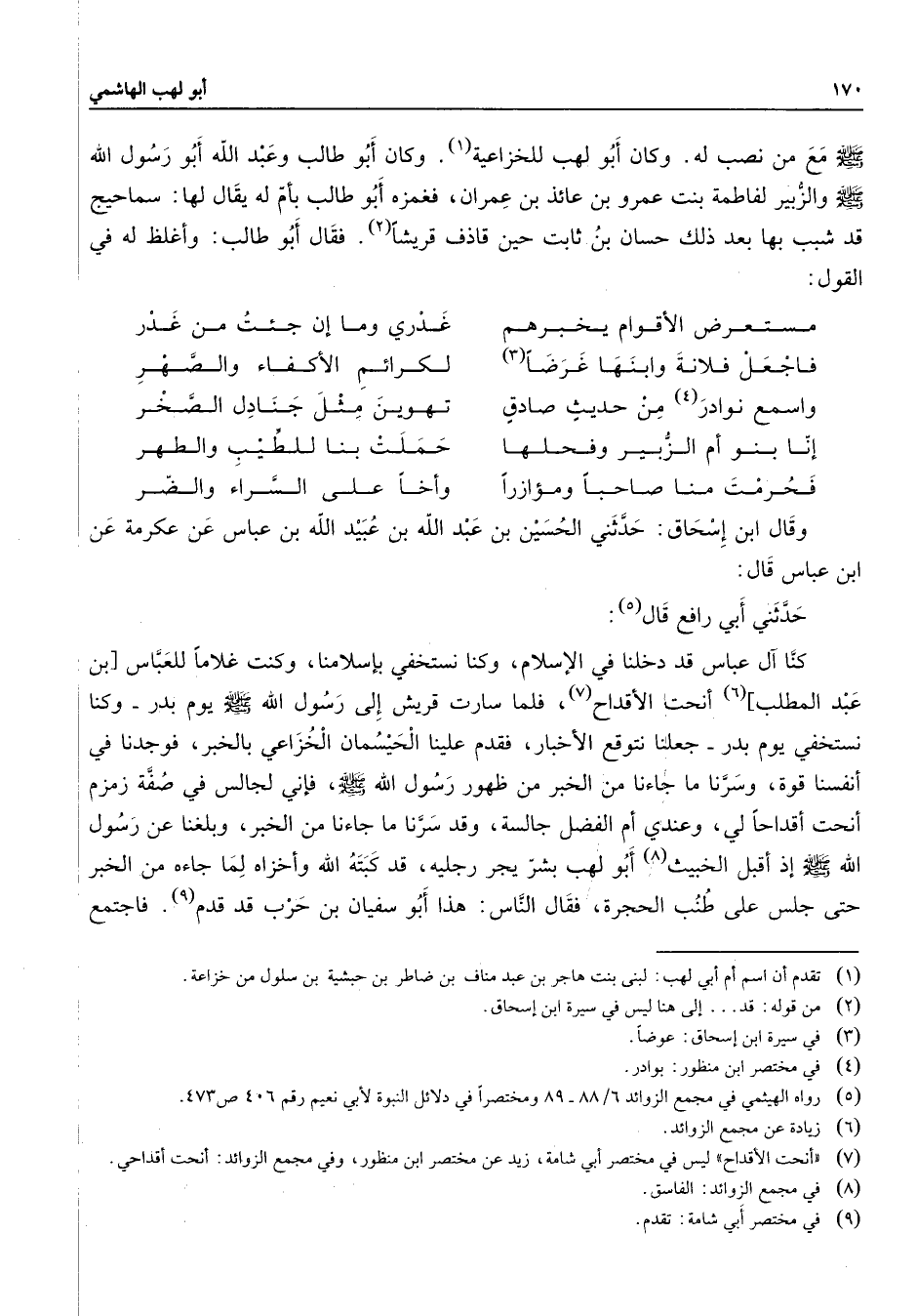 (1) تقدم أن اسم أم أبي لهب: لبنى بنت هاجر بن عبد مناف بن ضاطر بن حبشية بن سلول من خزاعة