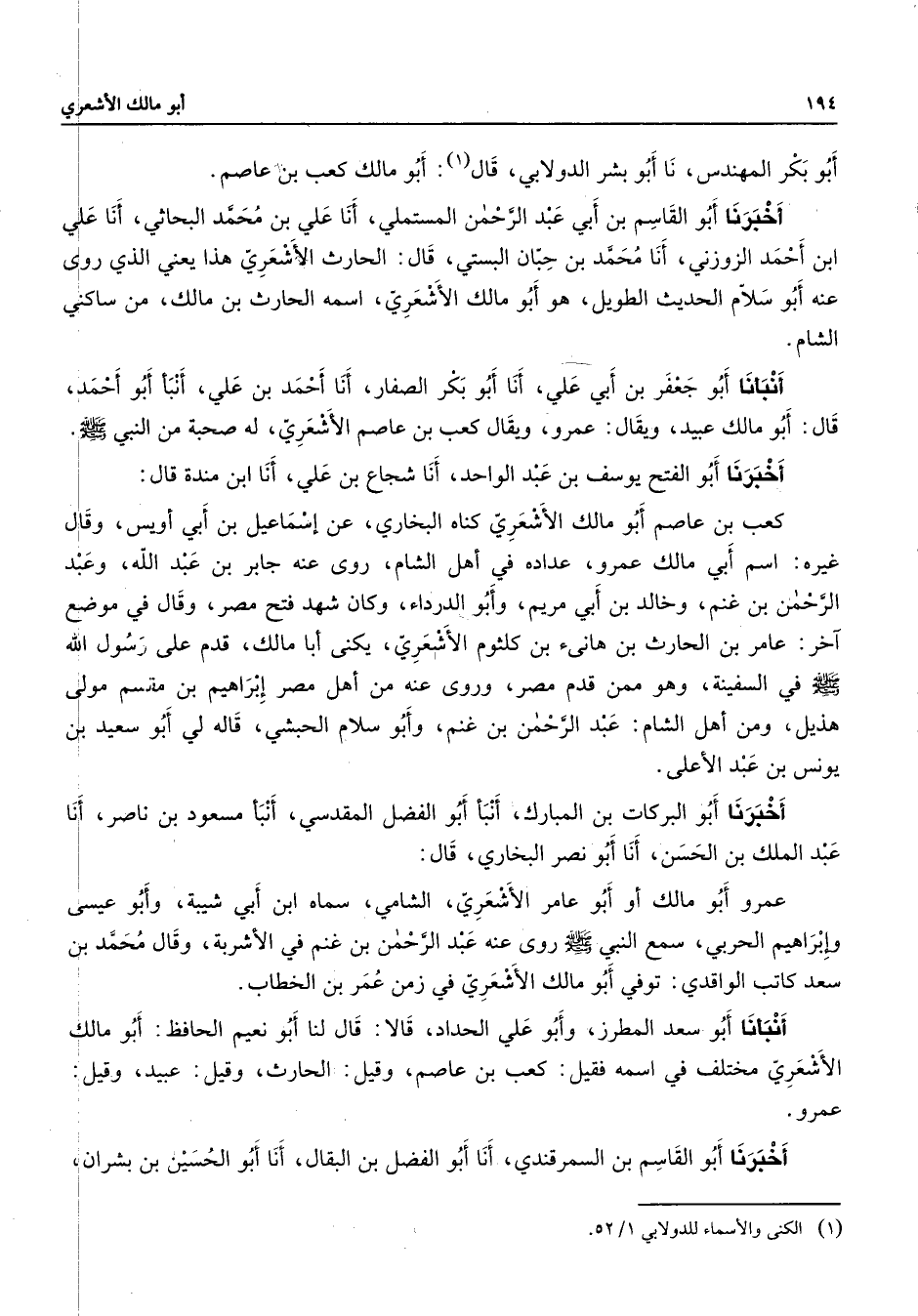 (1) الكنى والاسماء للدولابي 1 / 52