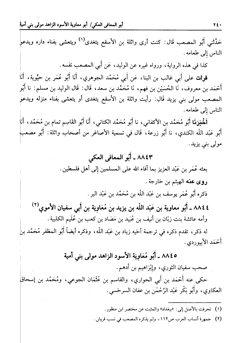 8844 - أبو معاوية بن عبد الله بن يزيد بن معاوية بن أبي سفيان الأموي (2) وأمه عائشة بنت زبان بن أنيف بن عبيد بن مصاد بن كعب بن عليم الكلبية له ذكر تقدم ذكره في ترجمه أخيه زياد بن عبد الله وذكره أيضا أبو المظفر محمد بن أحمد الأبيوردي