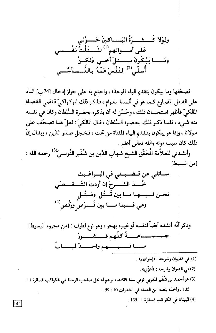 وأنشدني للعلاّمة المُحَقِّق الشيخ شهاب الدِّين بن شُقَير التُّونسيّ رحمه الله: