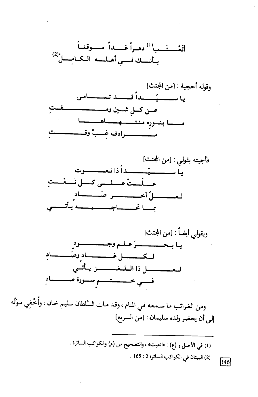 ومن الغرائب ما سمعه في المنام، وقد مات السُّلطان سليم خان، وأُخْفِي موَتُه إلى أن يحضر ولده سليمان: