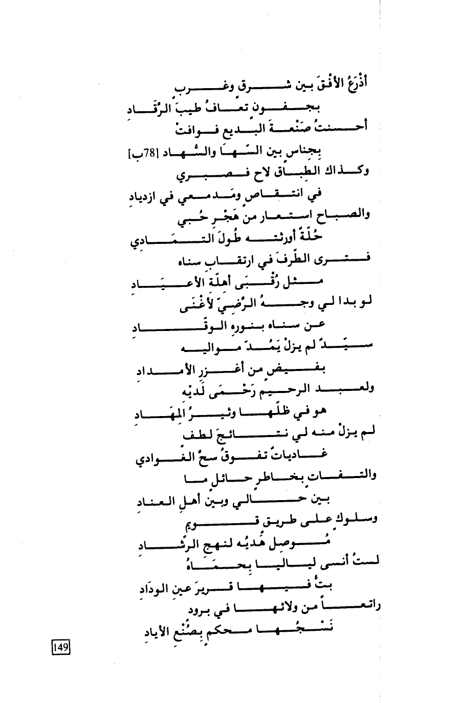 لستُ أنسى لياليا بِحمَاهُ ... بتُّ فيها قريرَ عينِ الودَادِ