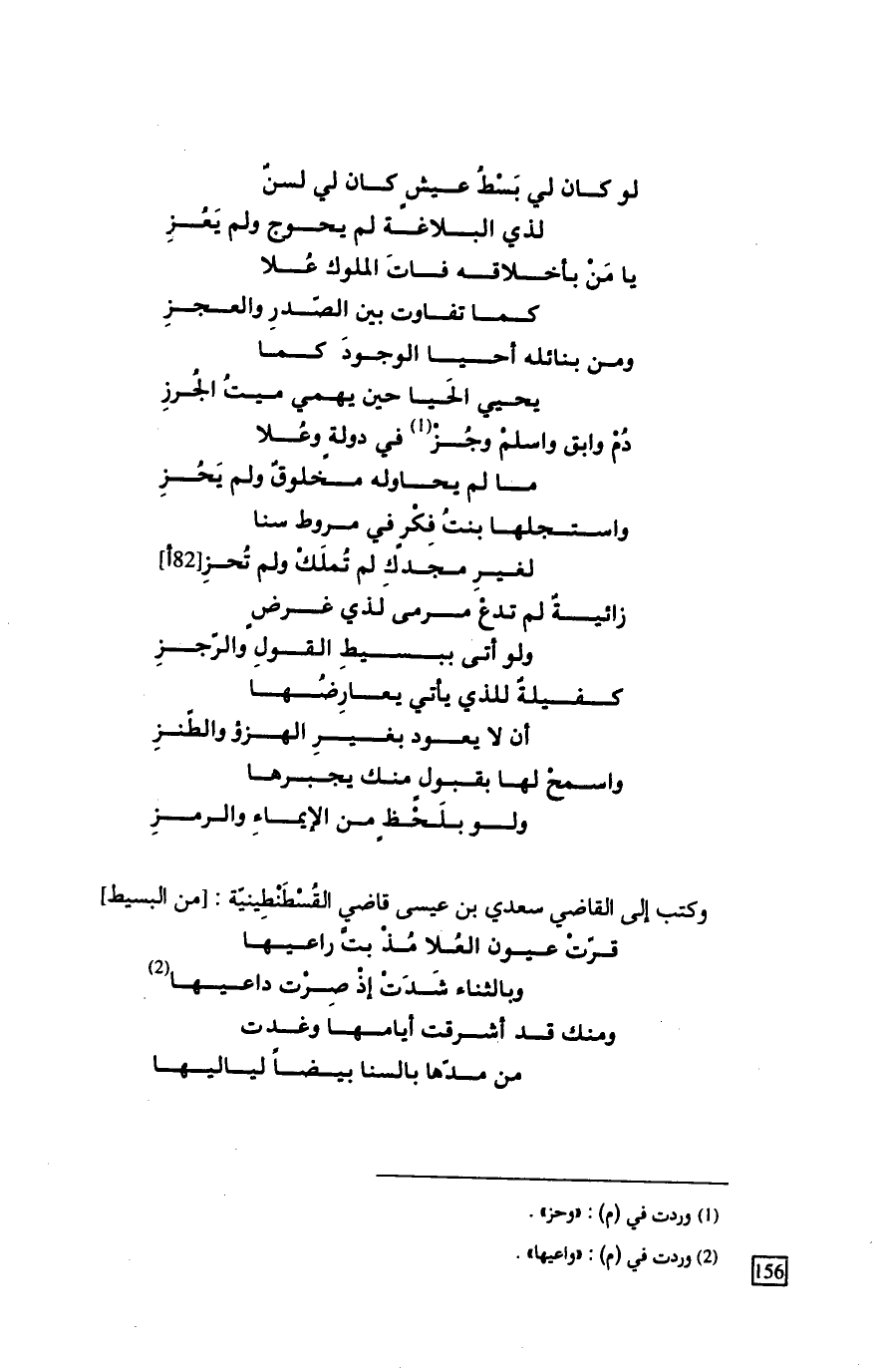 لو كان لي بَسْطُ عيشٍ كان لي لسنٌ ... لذي البلاغة لم يحوج ولم يَعُزِ