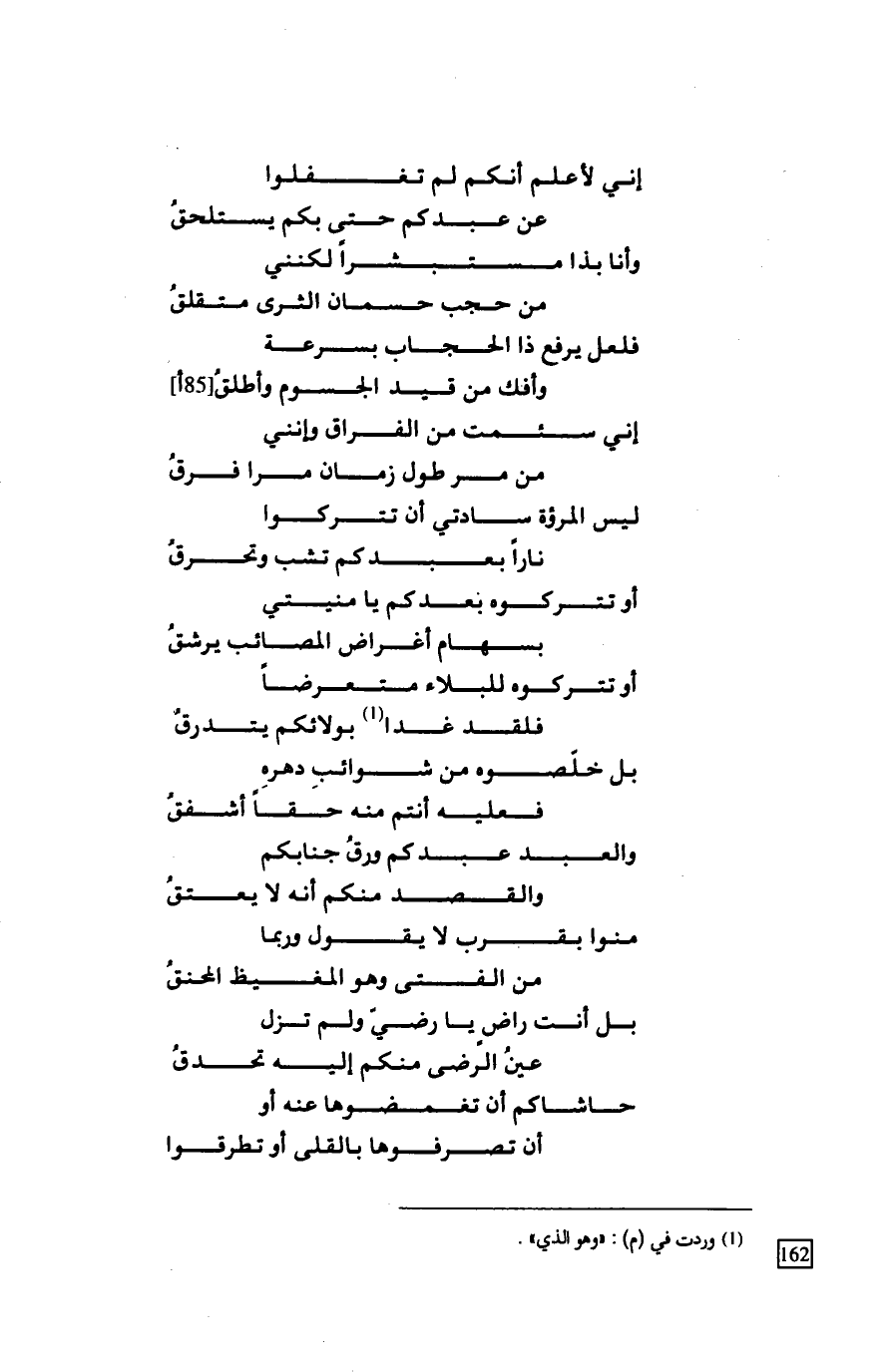 فلعل يرفع ذا الحجاب بسرعة ... وأفك من قيد الجسوم وأطلقُ