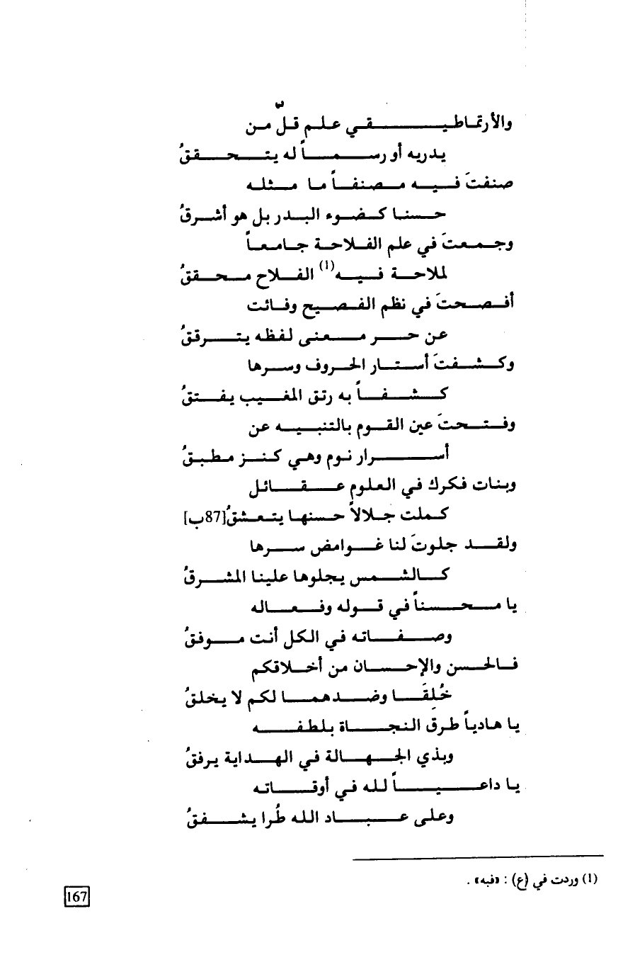 والأرتماطيقي علم قل من ... يدريه أو رسماً له يتحققُ