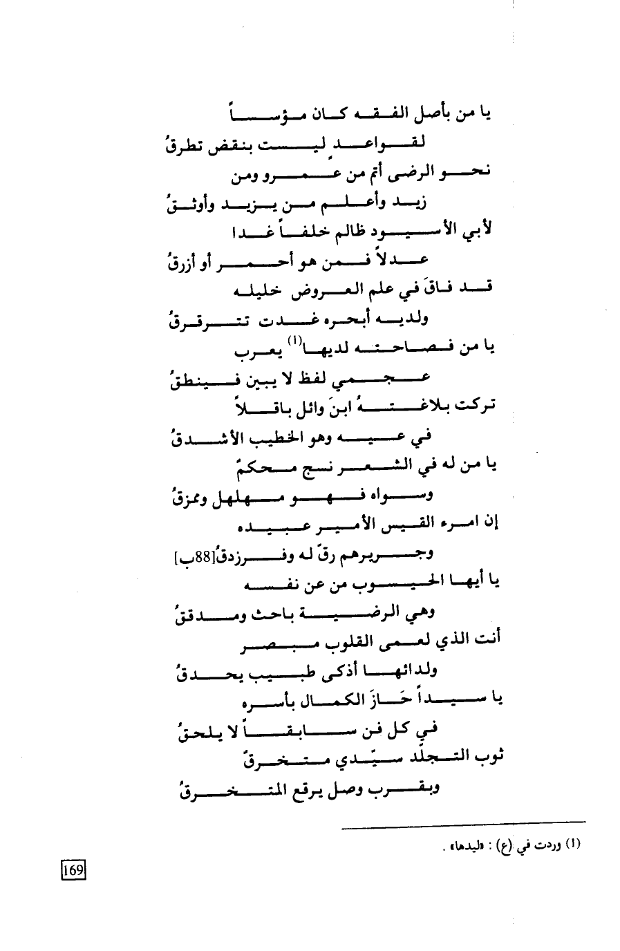 قد فاقَ في علم العروض خليله ... ولديه أبحره غدت تترقرقُ