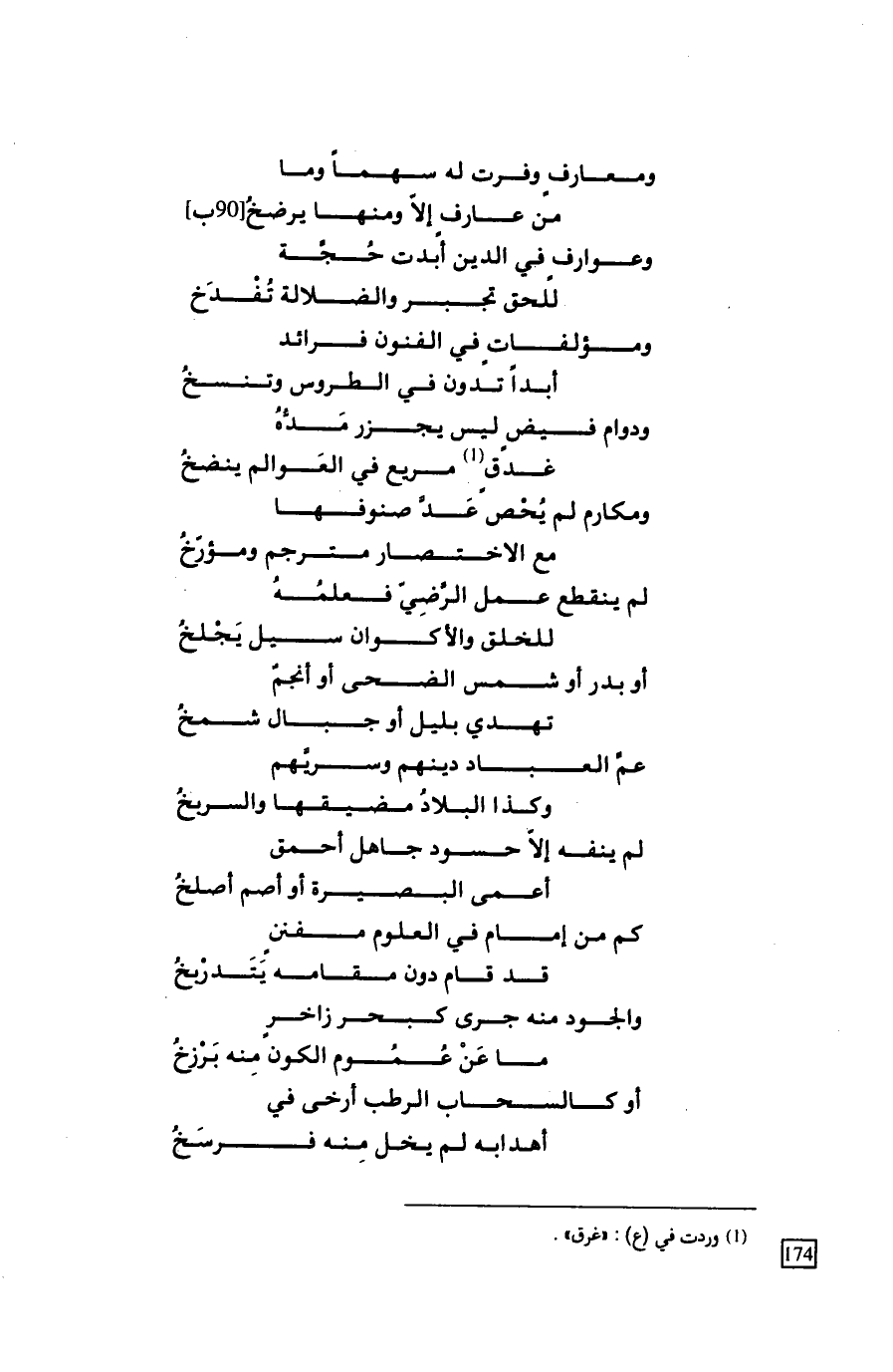 ومؤلفاتٍ في الفنون فرائد ... أبداً تدون في الطروس وتنسخُ