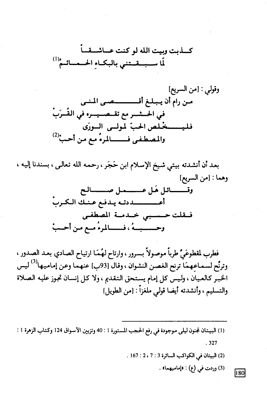 فطرب لمقطوعَيَّ طرباً موصولاً بسرور، وارتاح لهُمَا ارتياح الصادي بعد الصدور، وترنَّح لسماعِهمَا ترنح الغصن النشوان، وقال عنهما وعن إماميها ليس الخبر كالعيان، وليس كل إمام يستحق التقديم، ولا كل إنسان تجوز عليه الصلاة والتسليم، وأنشدته أيضا قولي ملغزاً: