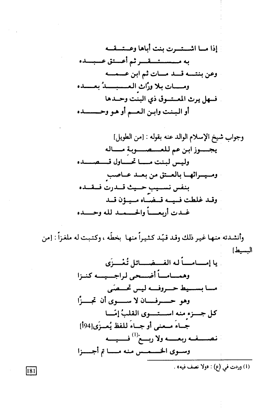 وعن بنته قد مات ثم ابن عمه ... ومات بلا ورَّاثٍ العبدُ بعده