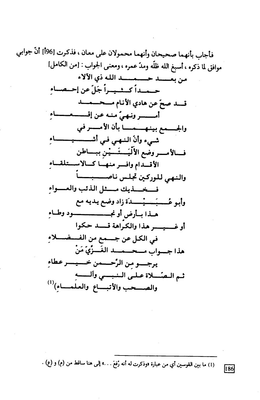 من بعد حمد الله ذي الآلاء ... حمداً كثيراً جَلّ عن إحصاءِ