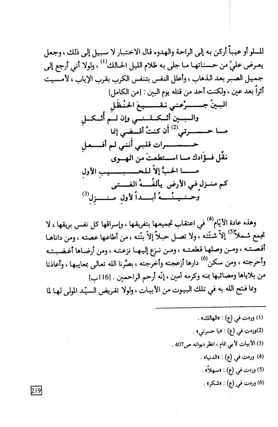 وهذه عادة الأيّام في اعتقاب تجميعها بتفريقها، وإسراقها كل نفس بريقها، لا تجمع شملاً إلاّ شتّته، ولا تصل حبلاً إلاّ بتّته، من أطاعها عصته، ومن داناها أقصته، ومن وصلها قطعته، ومن نزع إليها نزعته، ومن أرضاها أغضبته وأحرجته، ومن سكن دارها أزعجته وأخرجته، بصَّرنا الله تعالى بمعايبها، وأعاذنا من بلاياها ومصائبها بمنه وكرمه آمين، إنّه أرحم الراحمين.