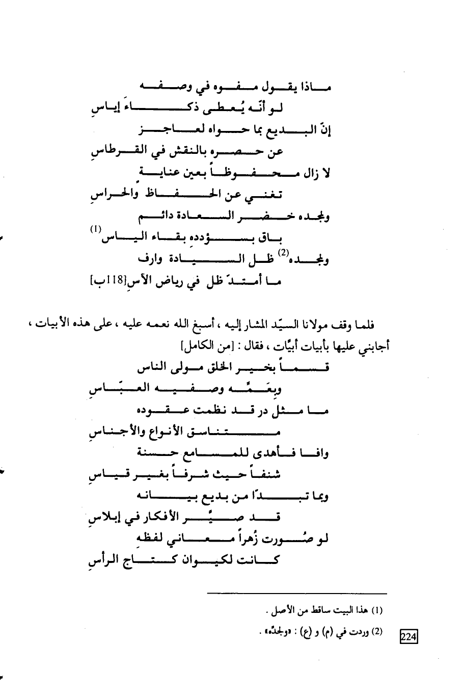وبما تبدّا من بديع بيانه ... قد صيَّر الأفكار في إبلاسِ