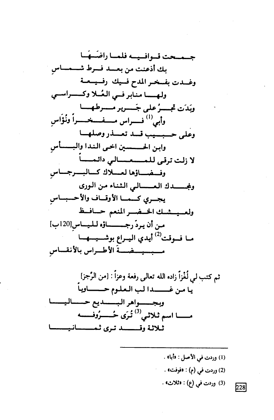 ولمجدك العالي الثناء من الورى ... يجري كما الأوقاف والأحباسِ