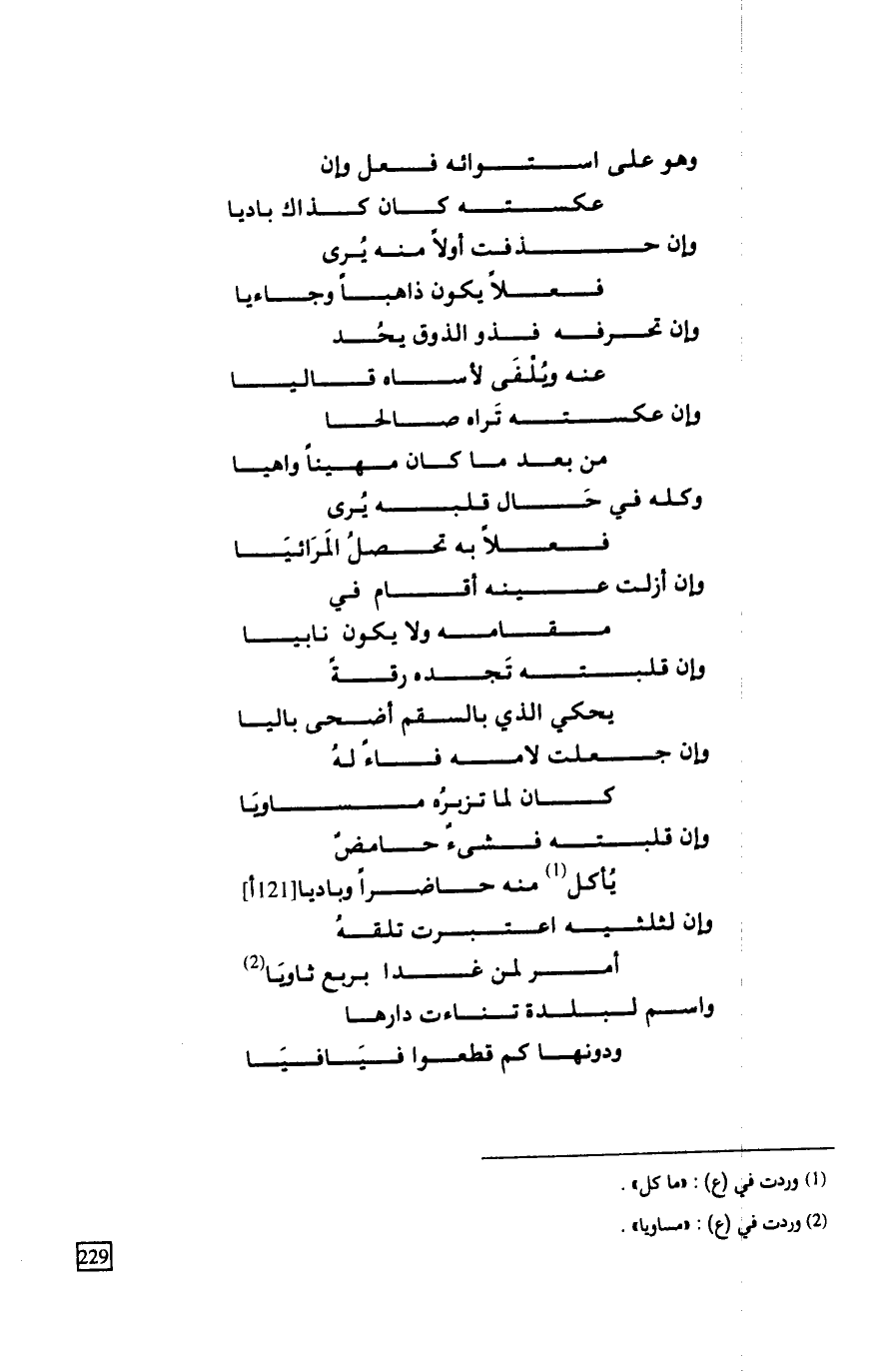 وهو على استوائه فعل وإن ... عكسته كان كذاك باديا