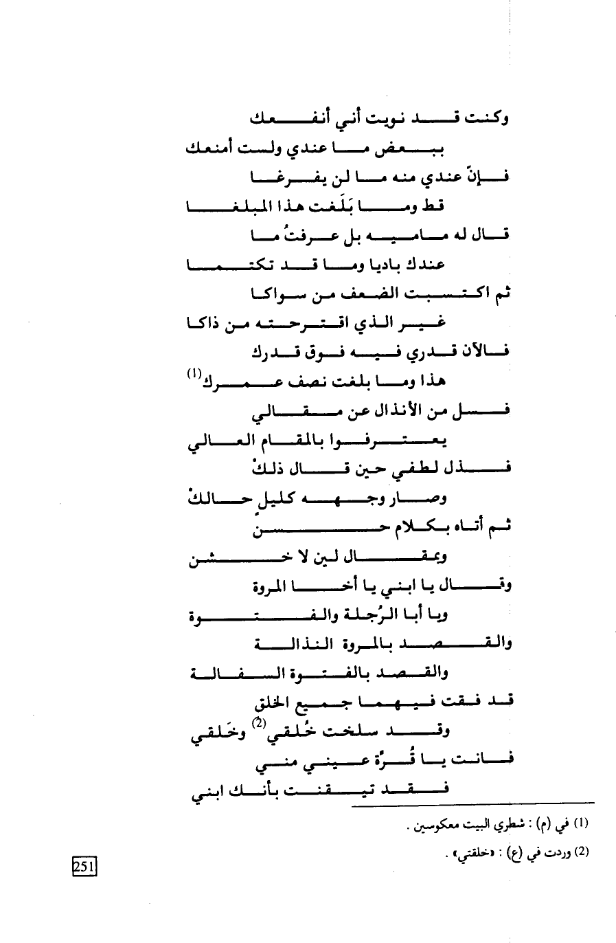 قد فقت فيهما جميع الخلقِ ... وقد سلخت خُلقي وخَلقي