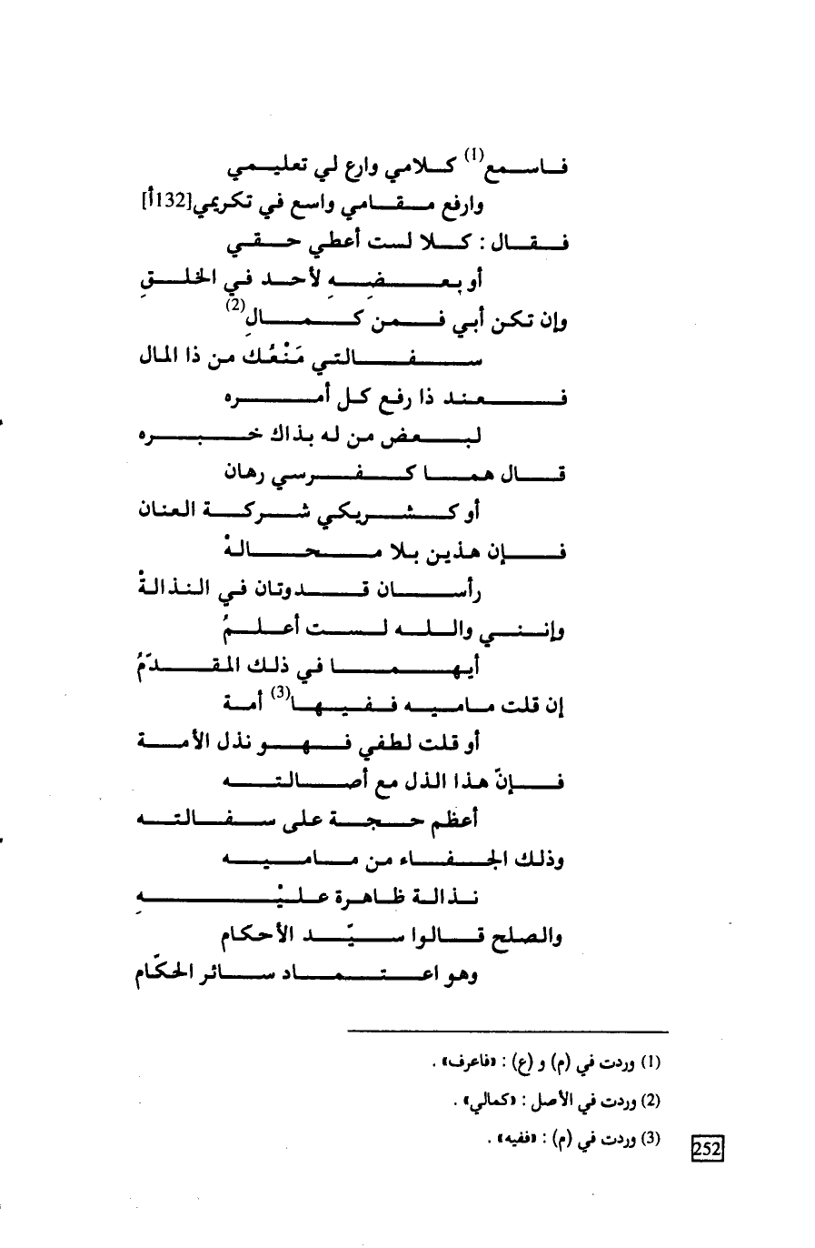 فقال: كلا لست أعطي حقي ... أو بعضِهِ لأحد في الخلقِ
