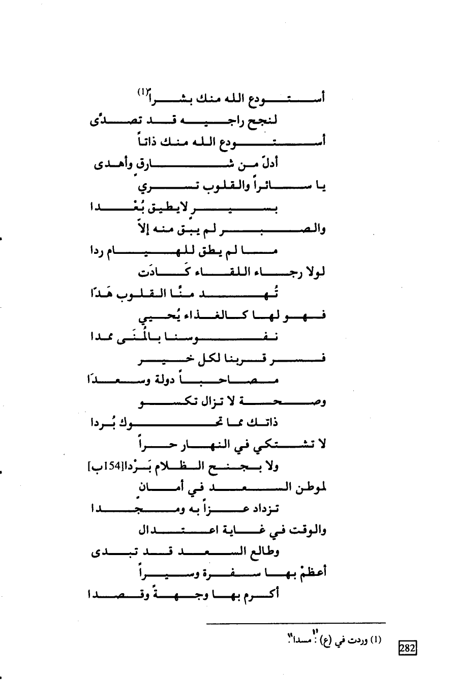 أستودع الله منك بشراً ... لنجح راجيه قد تصدَّى