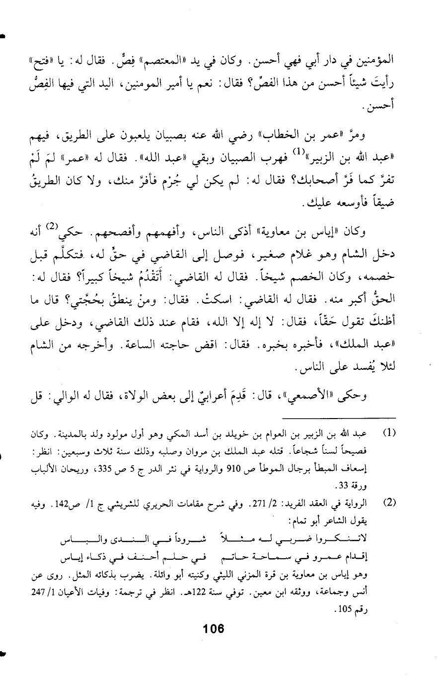 كبيراً؟ فقال له: الحقُّ أكبر منه. فقال له القاضي: اسكتْ. فقال: ومنْ ينطقُ بحُجَّتي؟ قال ما أظنكَ