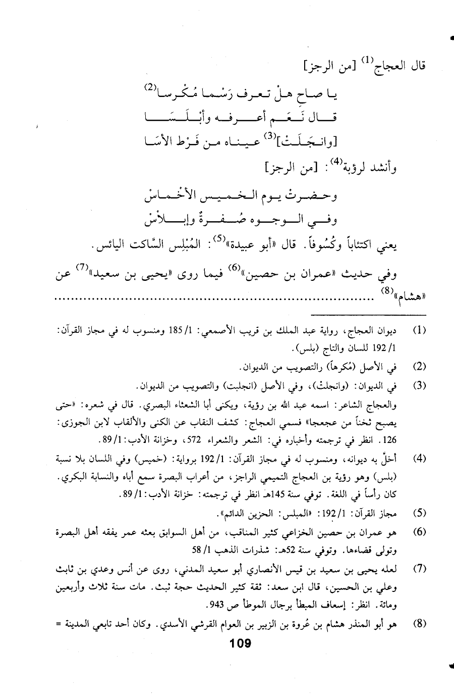وفي حديث عمران بن حصين فيما روى يحيى بن سعيد عن هشام