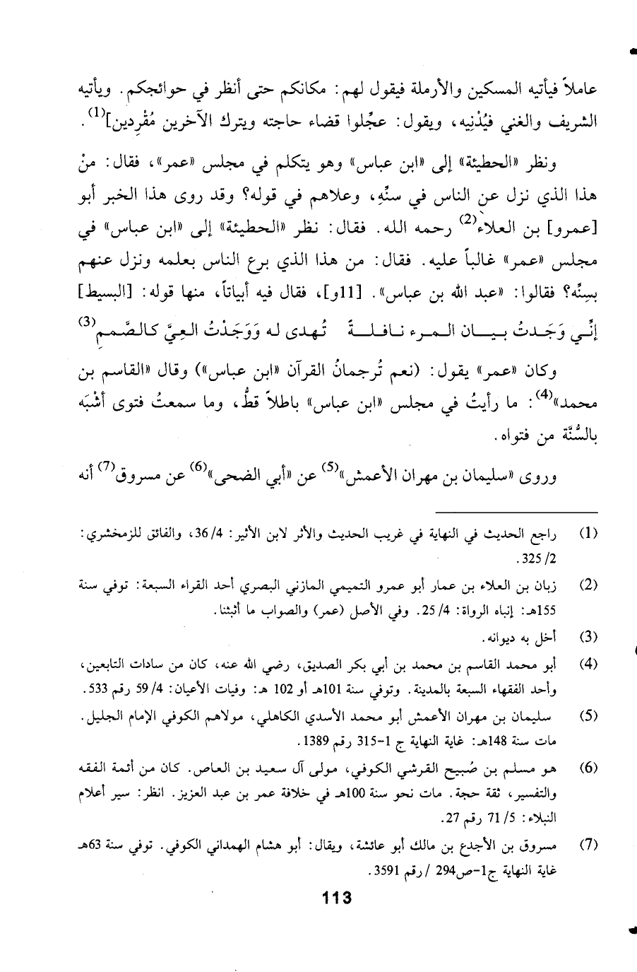 ونظر الحطيئة إلى ابن عباس وهو يتكلم في مجلس عمر، فقال: منْ هذا الذي نزل عن الناس في
