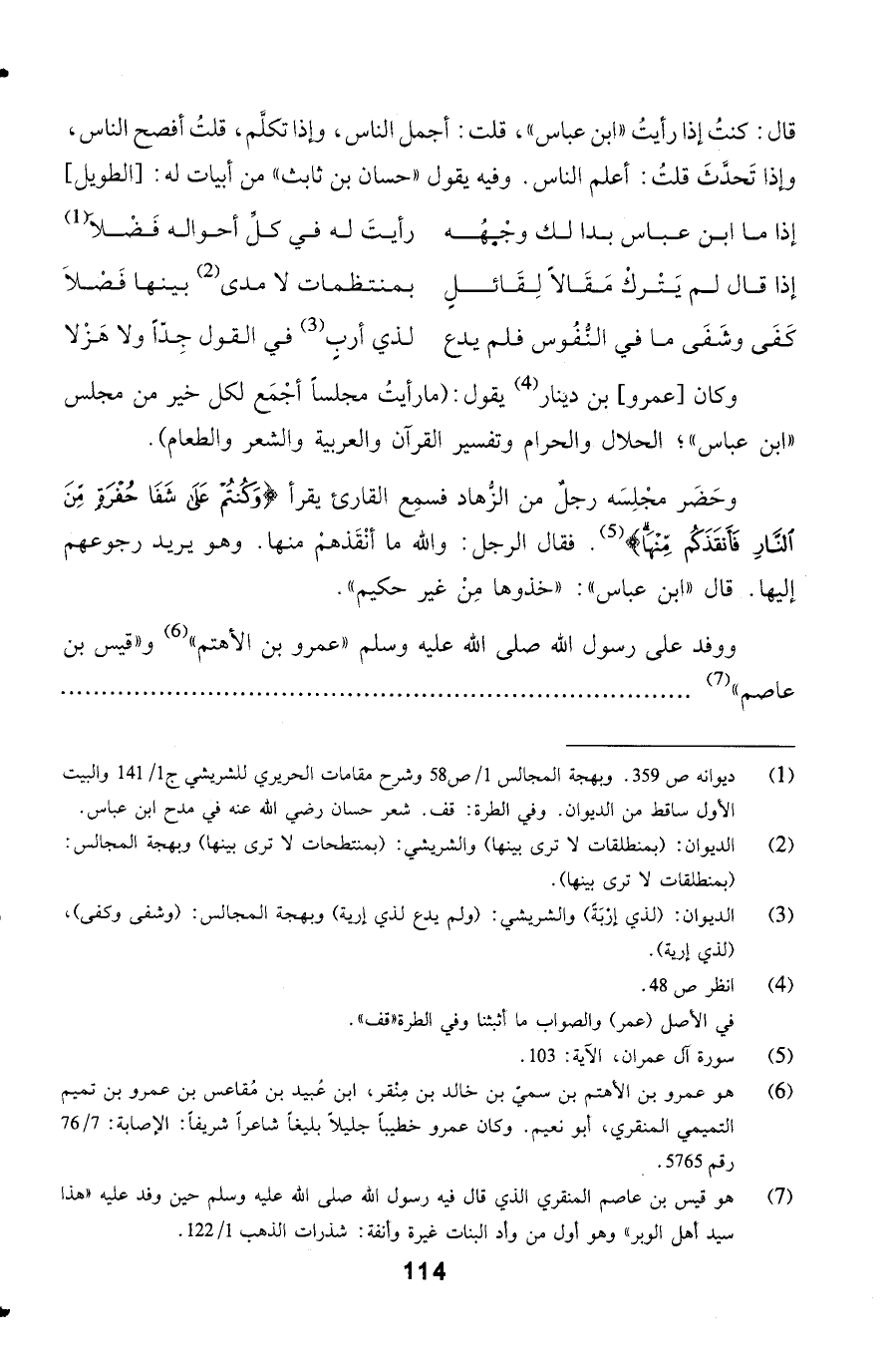 وكان عمرو بن دينار يقول: (مارأيتُ مجلساً أجْمَع لكل خير من مجلس ابن عباس؛ الحلال والحرام