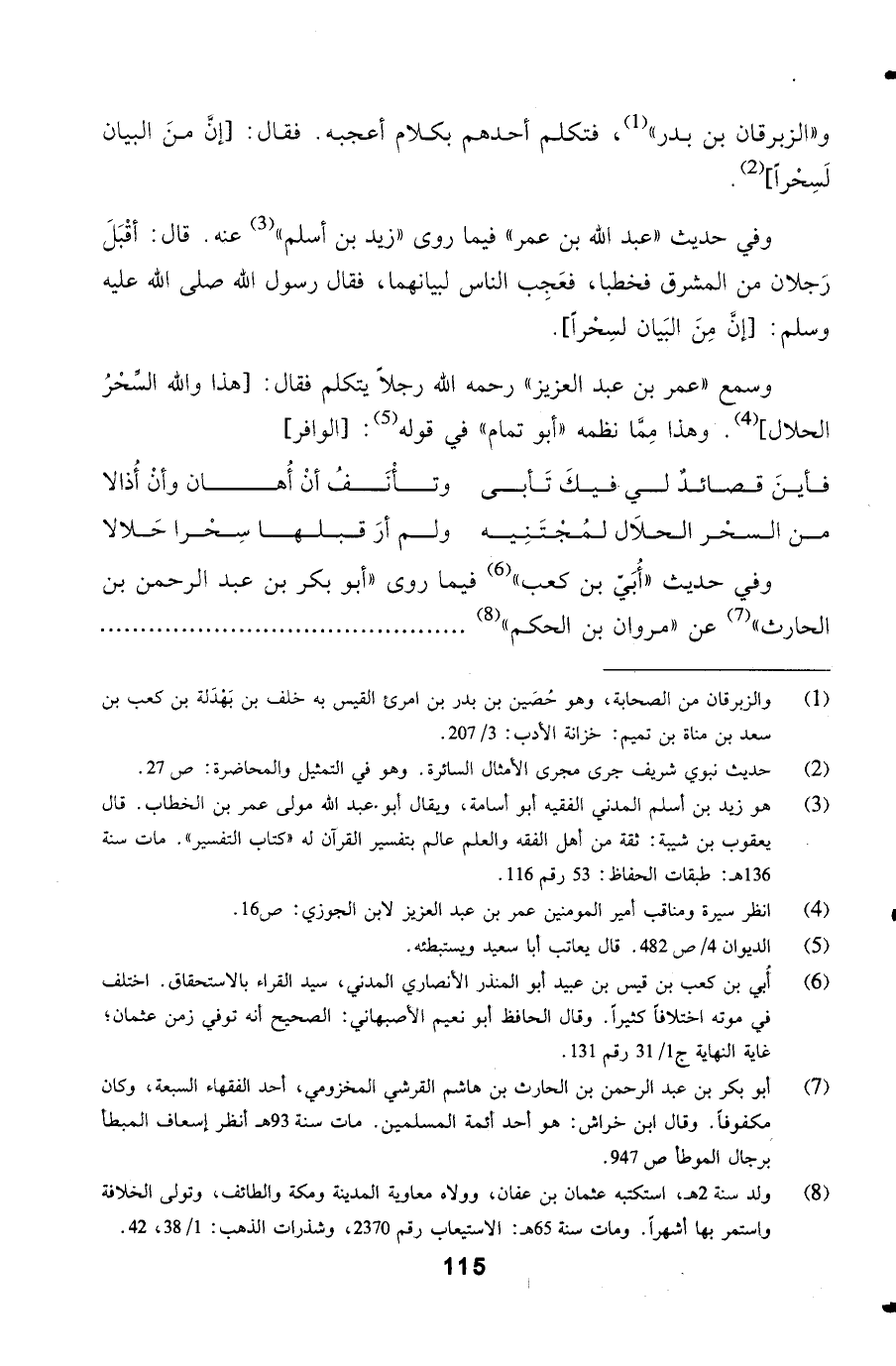 والزبرقان بن بدر، فتكلم أحدهم بكلام أعجبه. فقال: "إنَّ منَ البيان لَسِحْراً".