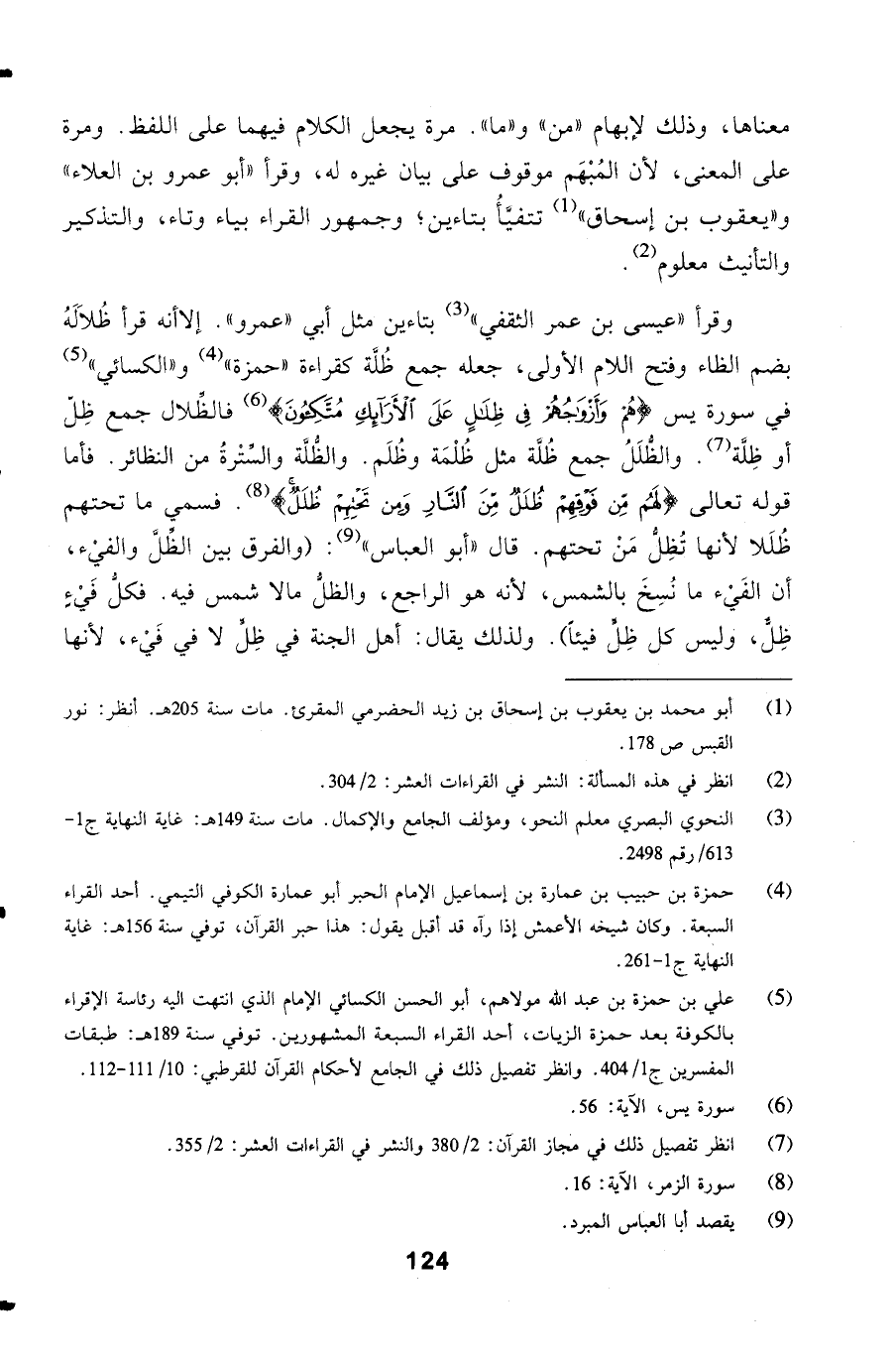 معناها، وذلك لإبهام من وما. مرة يجعل الكلام فيهما على اللفظ. ومرة على المعنى، لأن المُبْهَم موقوف على بيان غيره له،