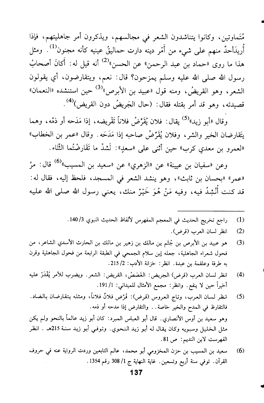 وقال أبو زيد يقال: فلان يُقَرِّضُ فلاناً تَقْريضه، إذا مَدَحه أو ذمَّه، وهما يتَقارضان الخير والشر،