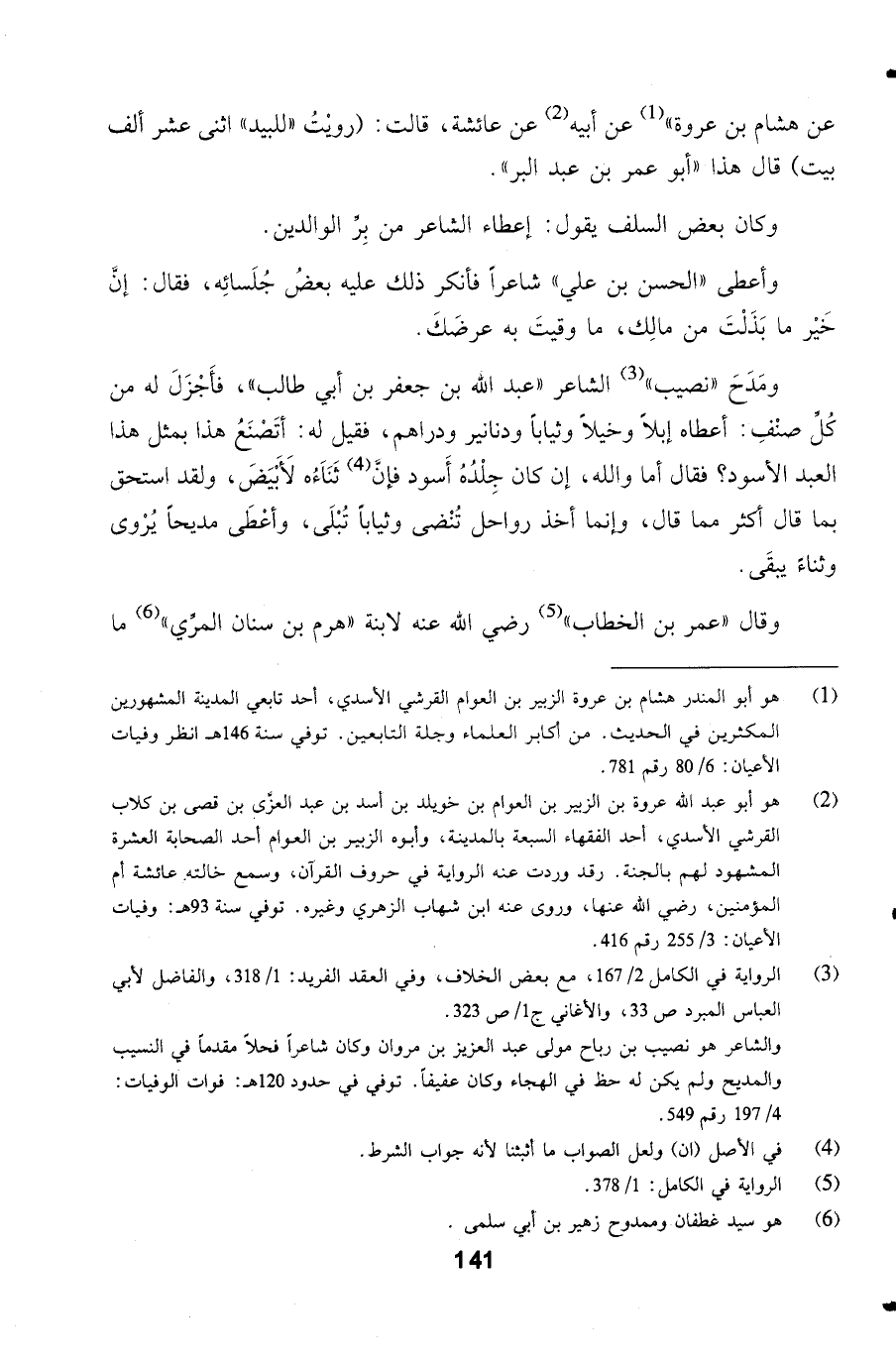 عن هشام بن عروة عن أبيه عن عائشة، قالت: (رويْتُ للبيد اثنى عشر ألف بيت) قال هذا أبو عمر بن