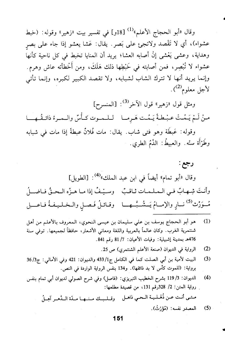 وقال أبو الحجاج الأعلم في تفسير بيت زهير وقوله: (خبط عشواء)، أي لا تَقْصد ولاتجئ على