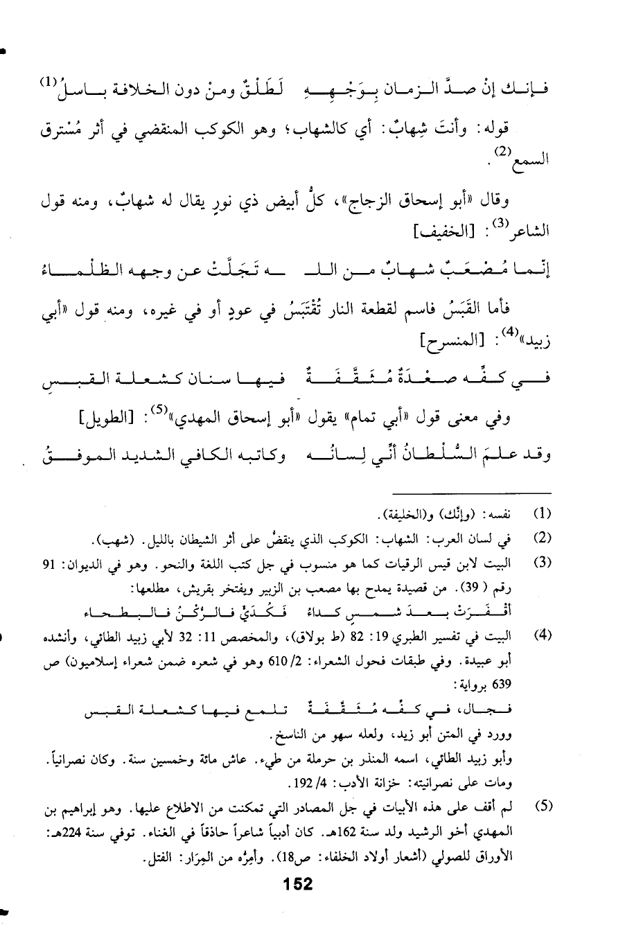 في كفِّه صعْدَةٌ مُثَقَّفَةٌ ... فيها سنان كشعلة القبسِ