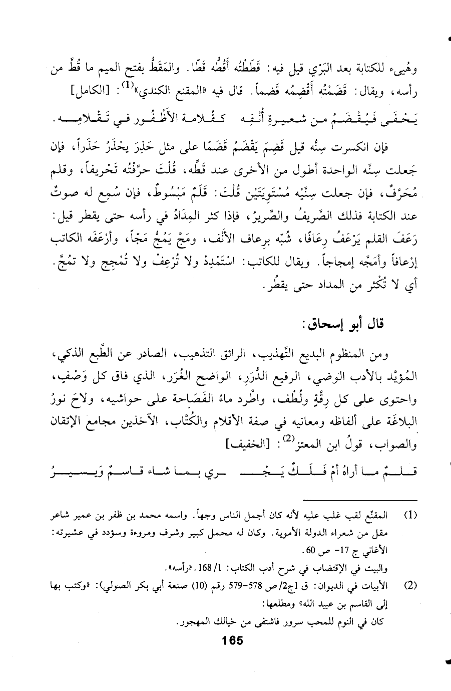 الفَصَاحة على حواشيه، ولاحَ نورُ البلاغَة على ألفاظه ومعانيه في صفة الأقلام والكُتَّاب، الآخذين