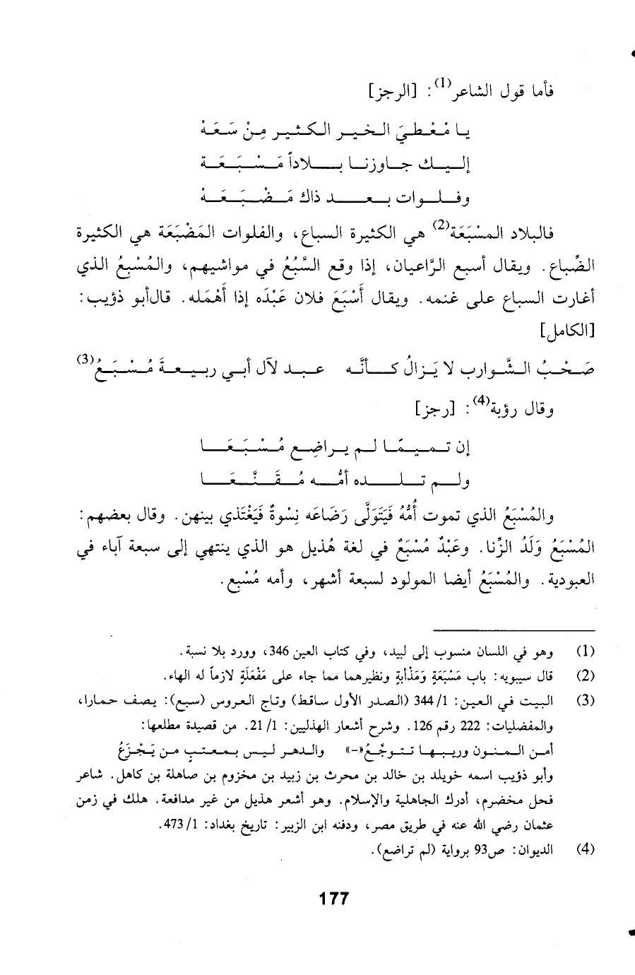 مُسْبَعٌ في لغة هُذيل هو الذي ينتهي إلى سبعة آباء في العبودية. والمُسْبَ