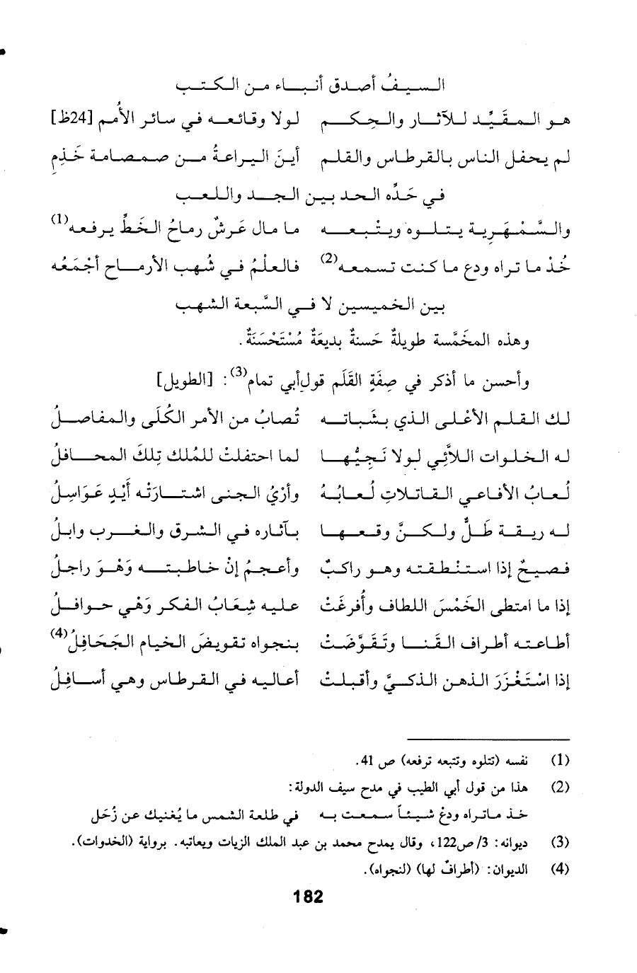 وأحسن ما أذكر في صِفَةٍ القَلَم قول أبي تمام: