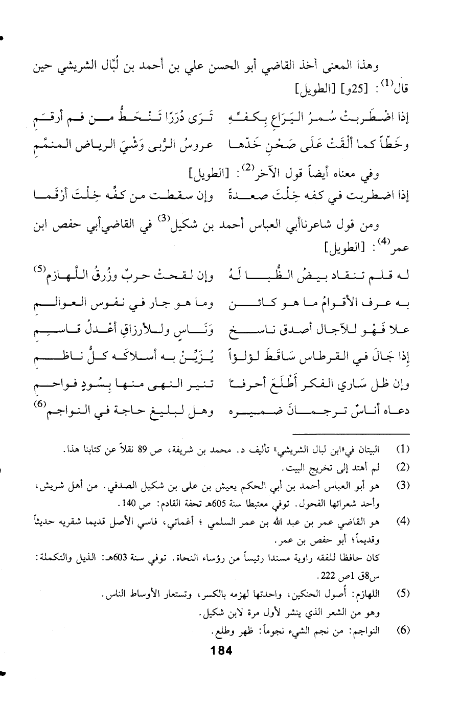 وهذا المعنى أخذ القاضي أبو الحسن علي بن أحمد بن لُبَّال الشريشي حين قال: