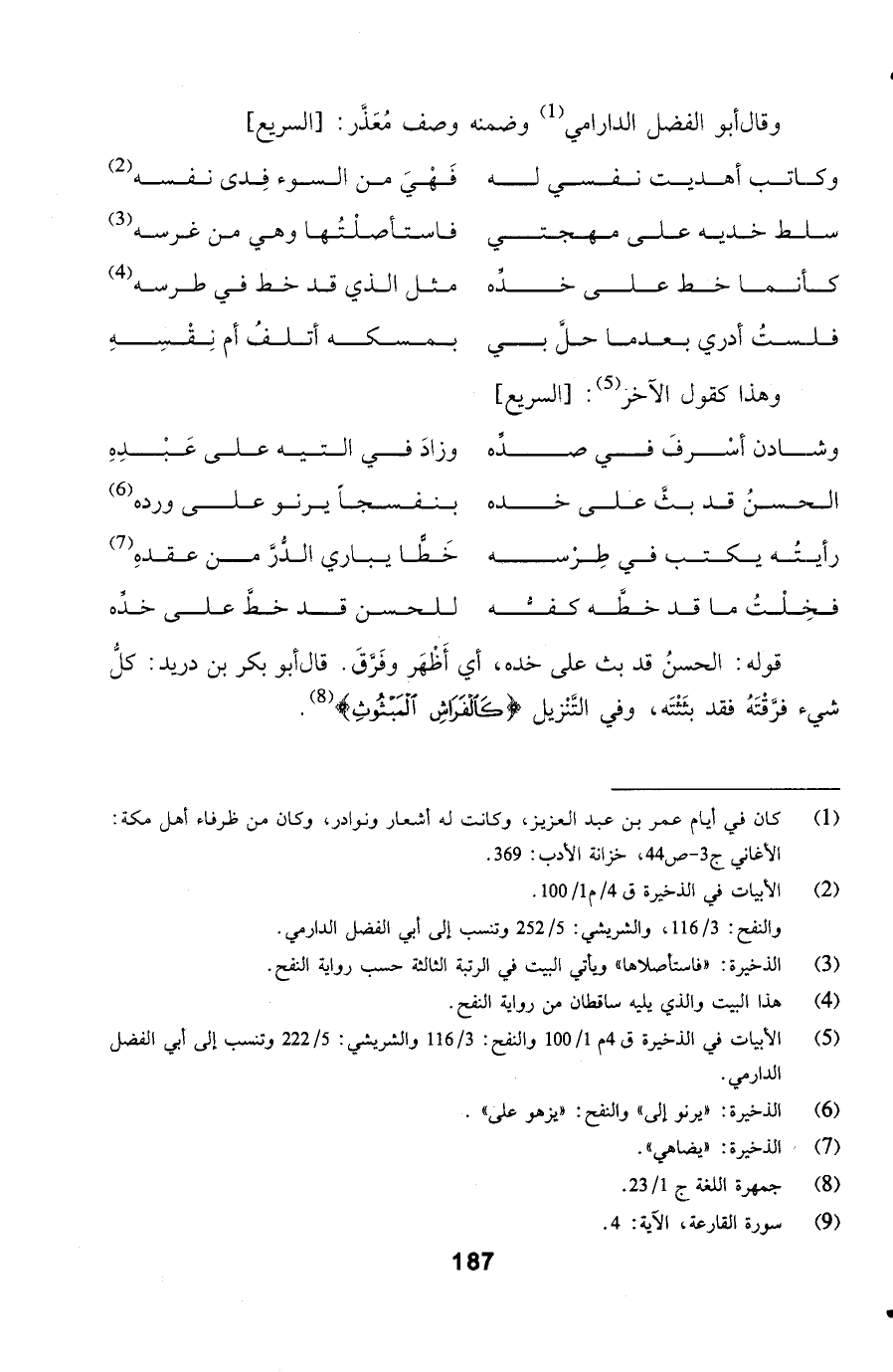 وقال أبو الفضل الدارامي وضمنه وصف مُعَذَّر:
